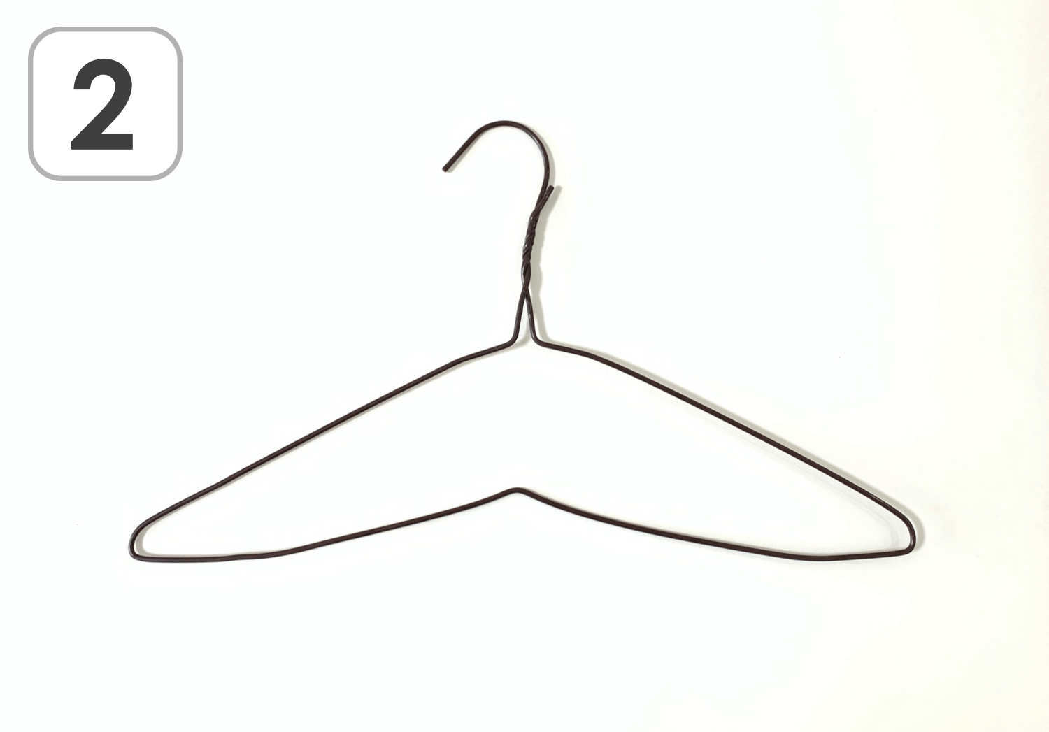 ②ハンガーの下の真ん中の部分を少し折り、凹ませておきます。