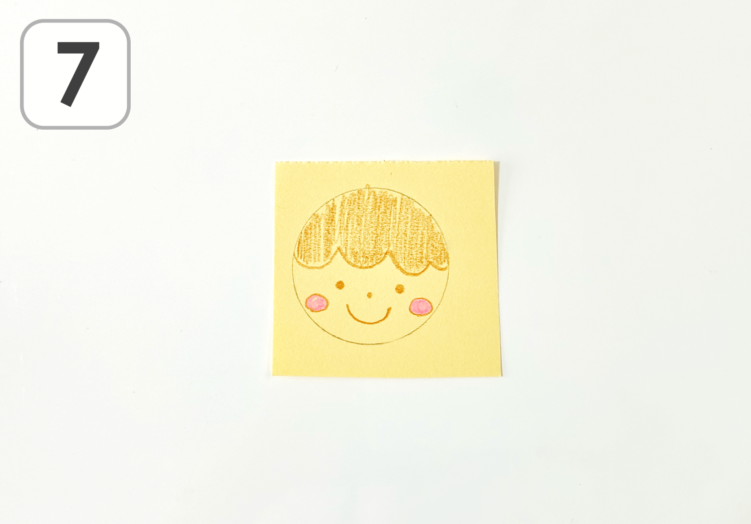 ⑦画用紙に直径5cm位の円を描き、その中に絵を描きます。
