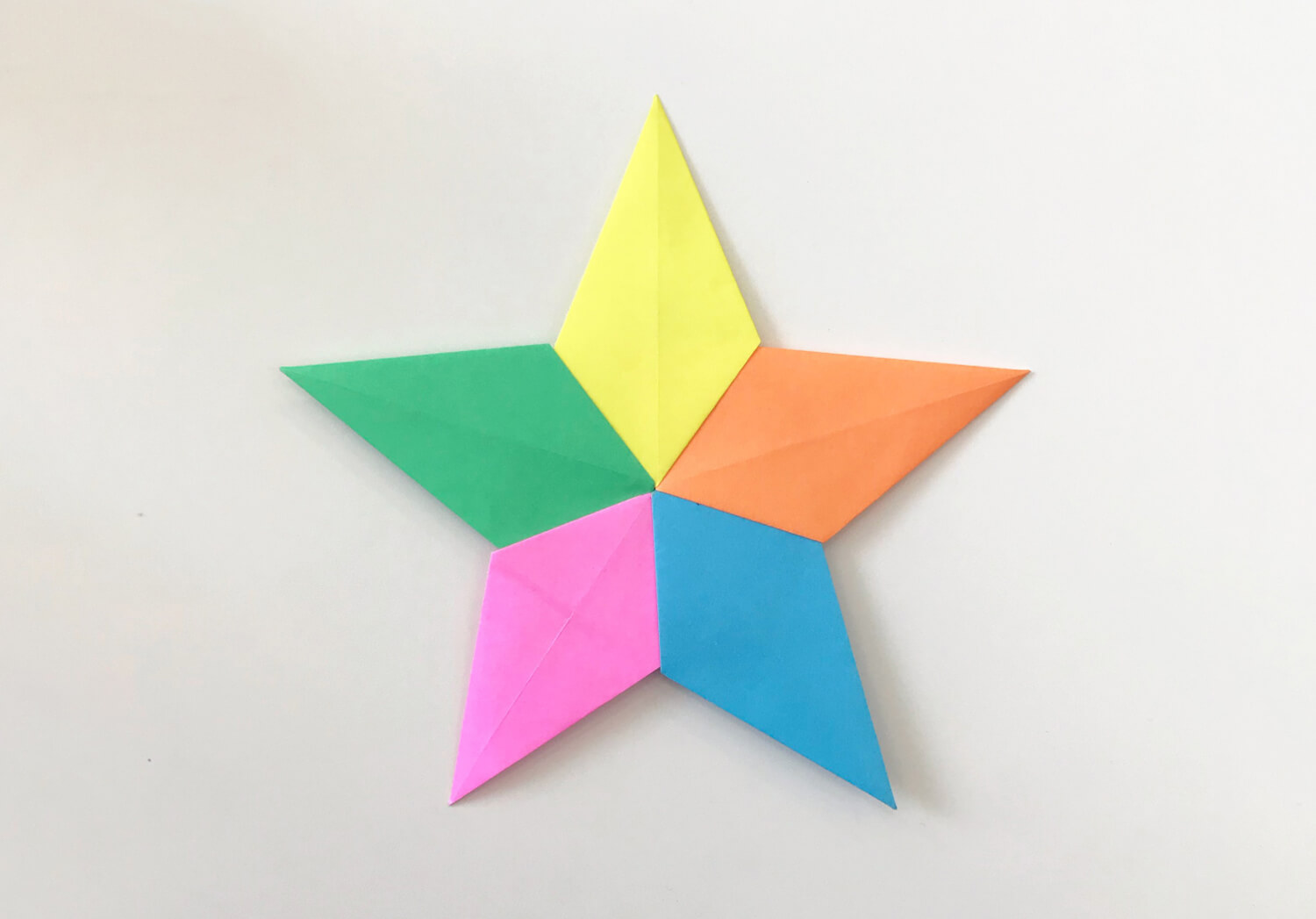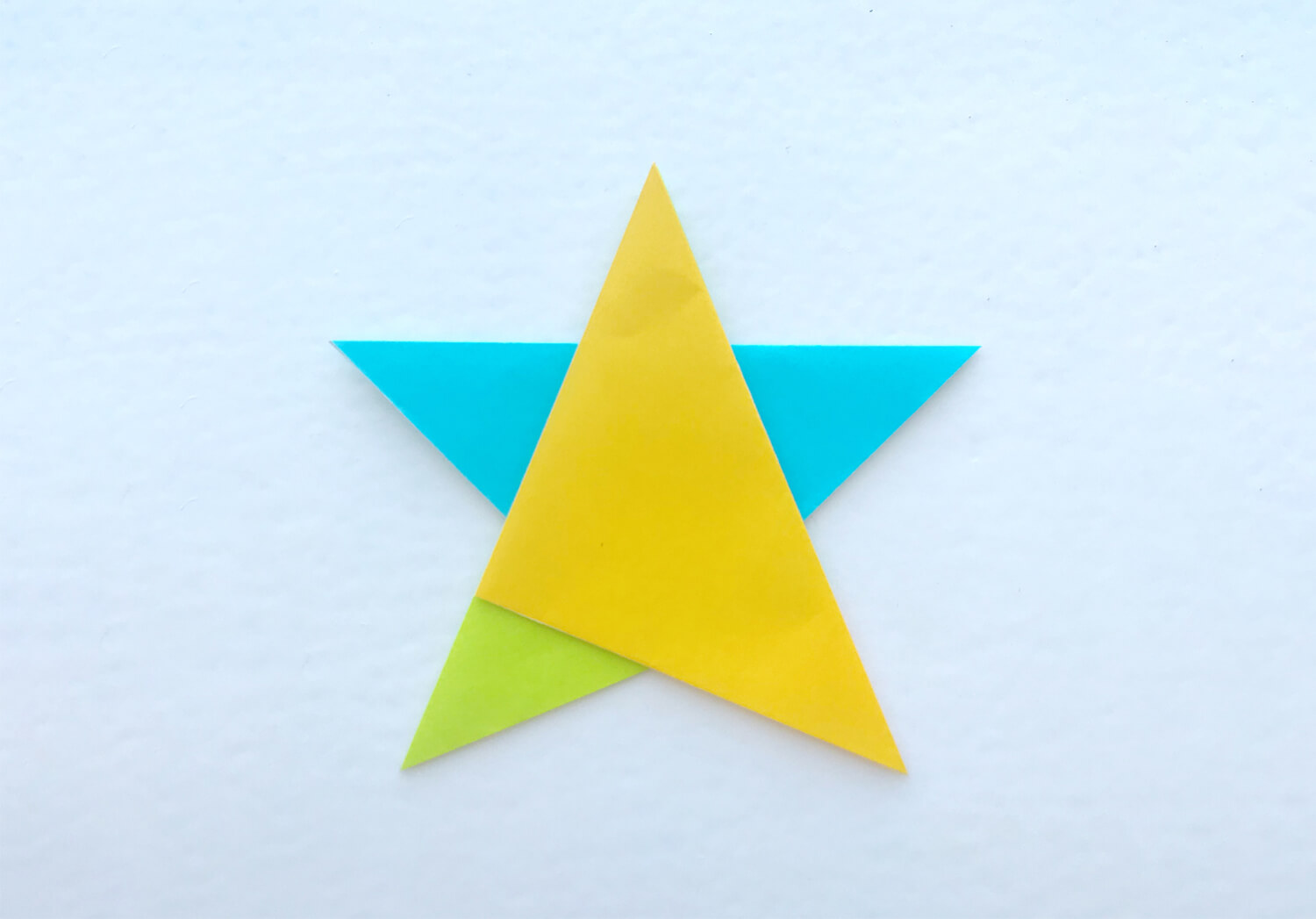 3枚のおりがみで作る「ほし」です。1回折りと糊で簡単に作ることができるので、低年齢児さんもOK!三角折りの練習におすすめです♪