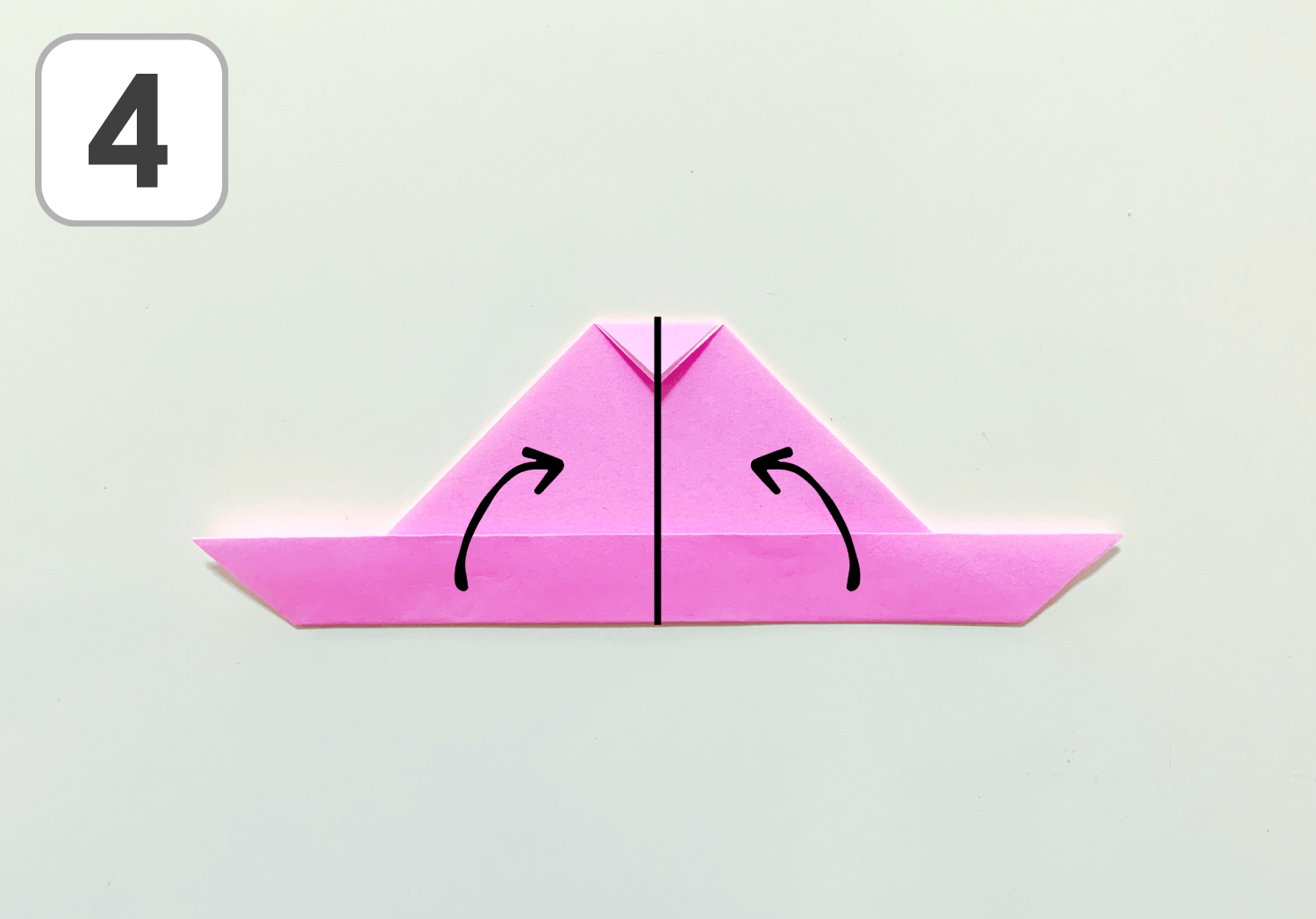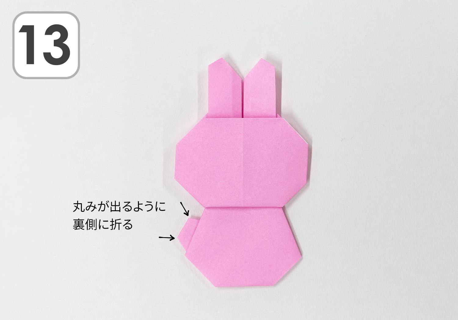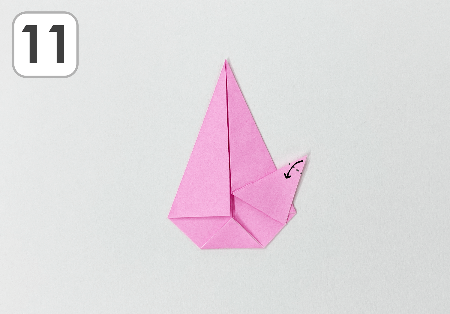 ⑪右の飛び出た部分(しっぽの部分)を点線に沿って少し内側に折ります。