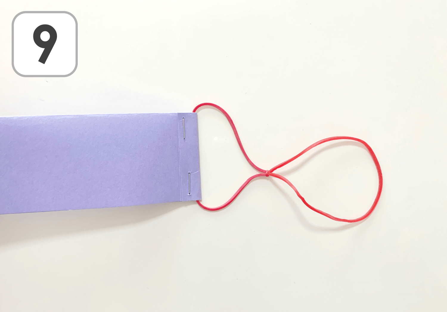 ⑩反対側も同じように輪ゴムを挟んでとめます。