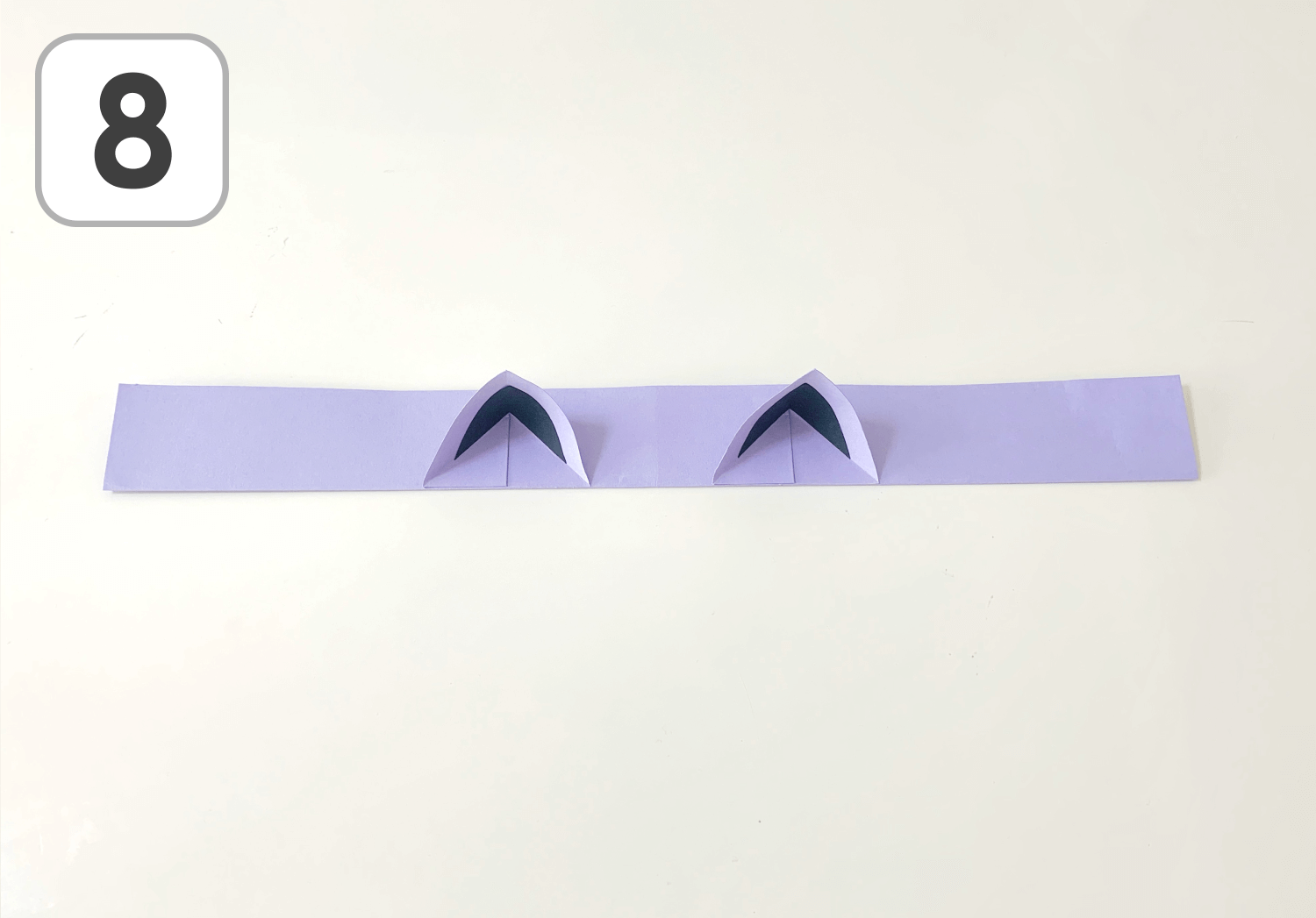 ⑦ヘアバンドの本体になる、紫の長方形を横で半分に折ります。