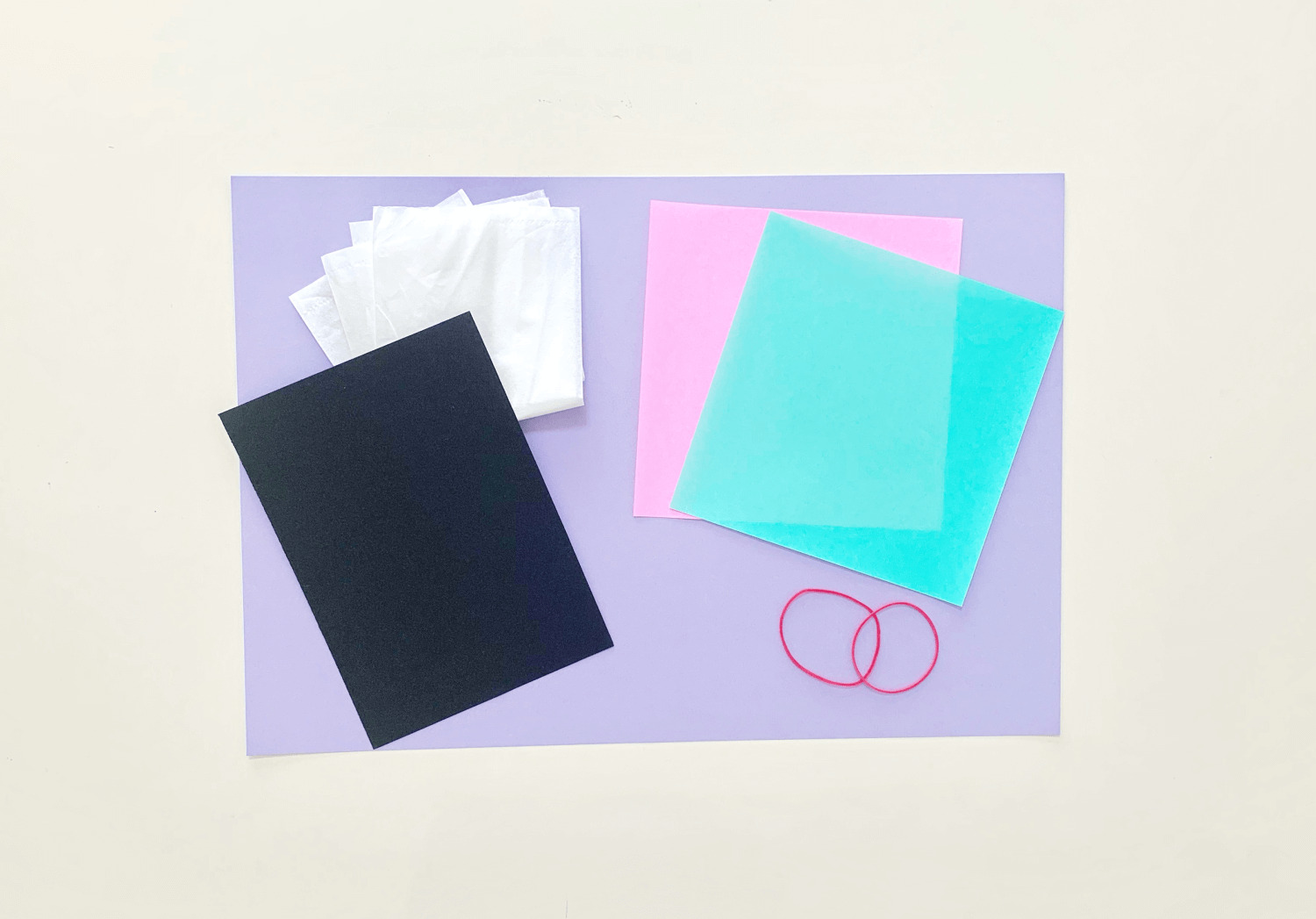 ④●が上にくるように置き、2で切った黒の画用紙をのりで貼り付けます。