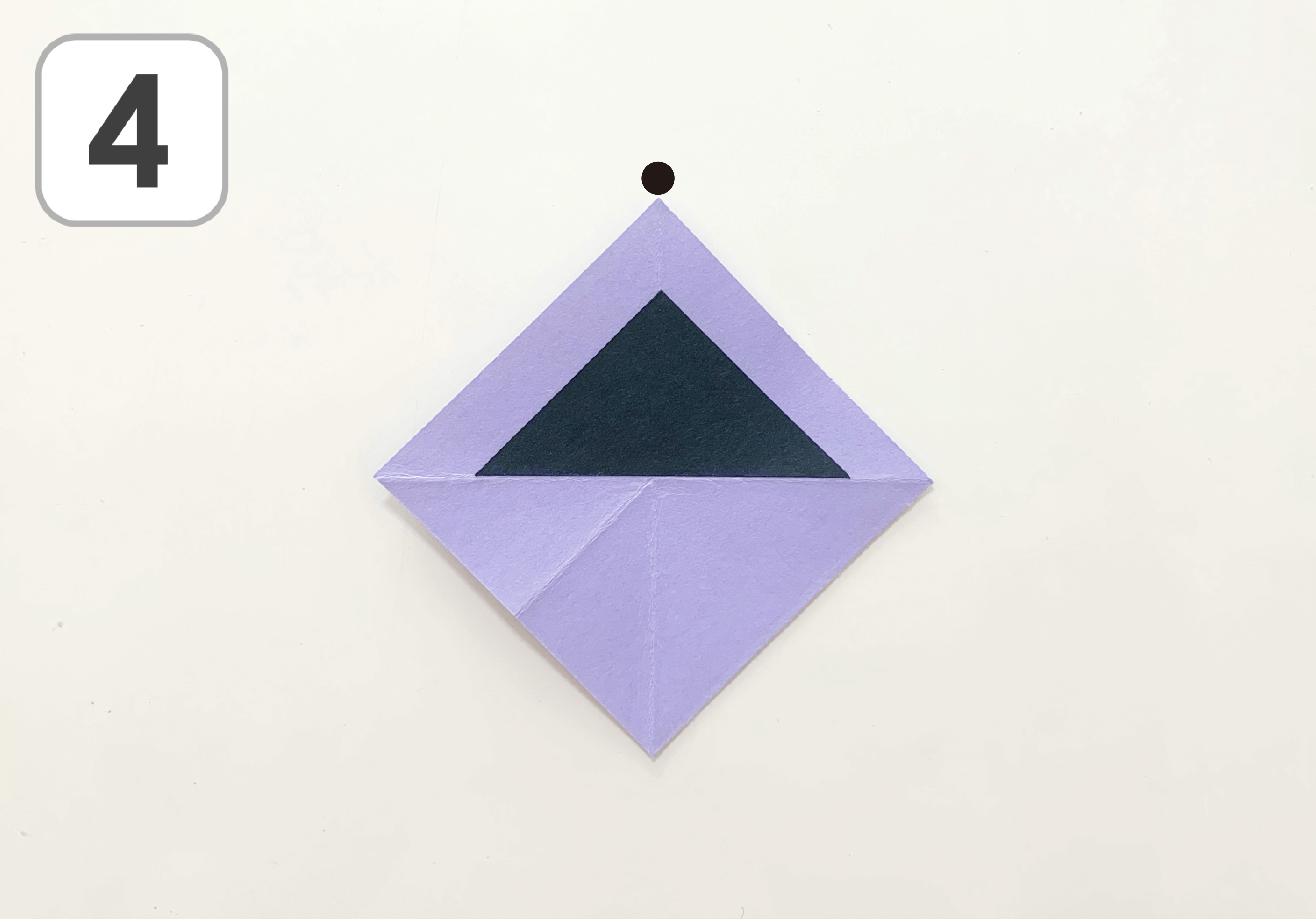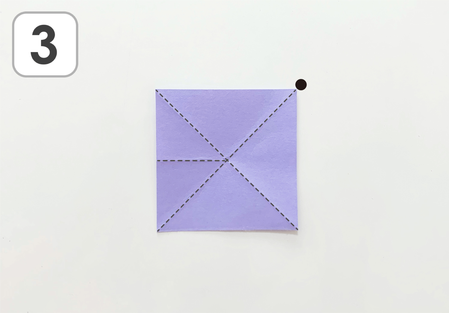 ③紫の正方形の紙に、写真のように折り目を付けます。