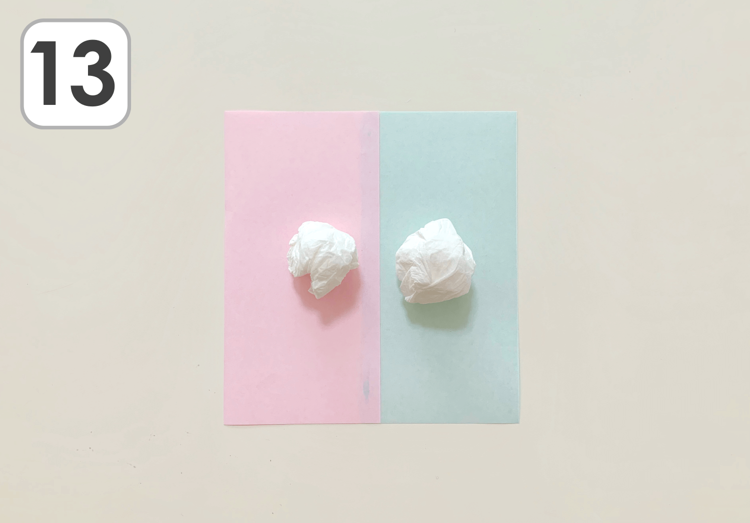 ⑬ティッシュペーパーを丸めて、12で貼り付けたおりがみの上に置きます。