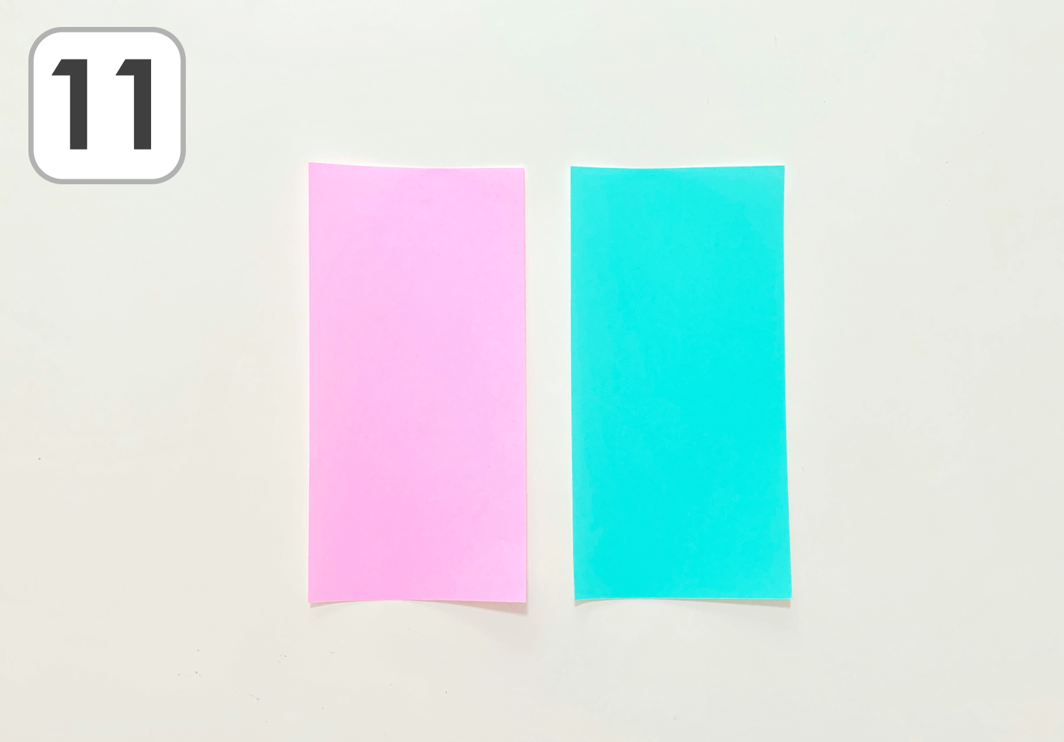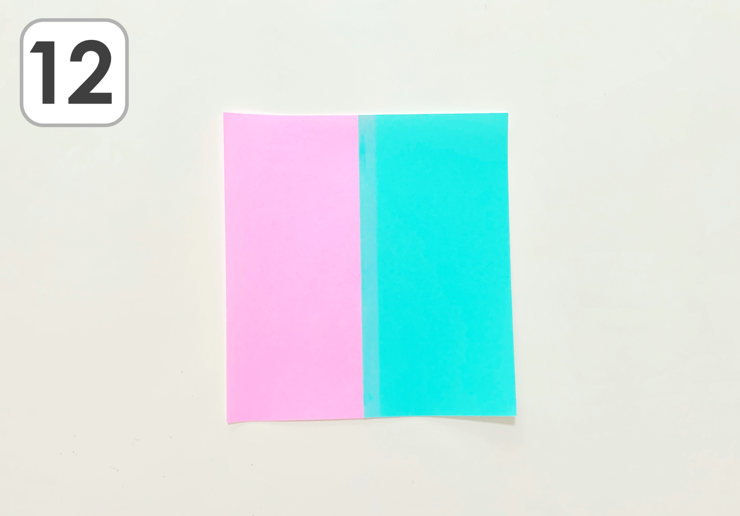 ⑫2枚を少し重ねるように置き、のりで貼り付けます。