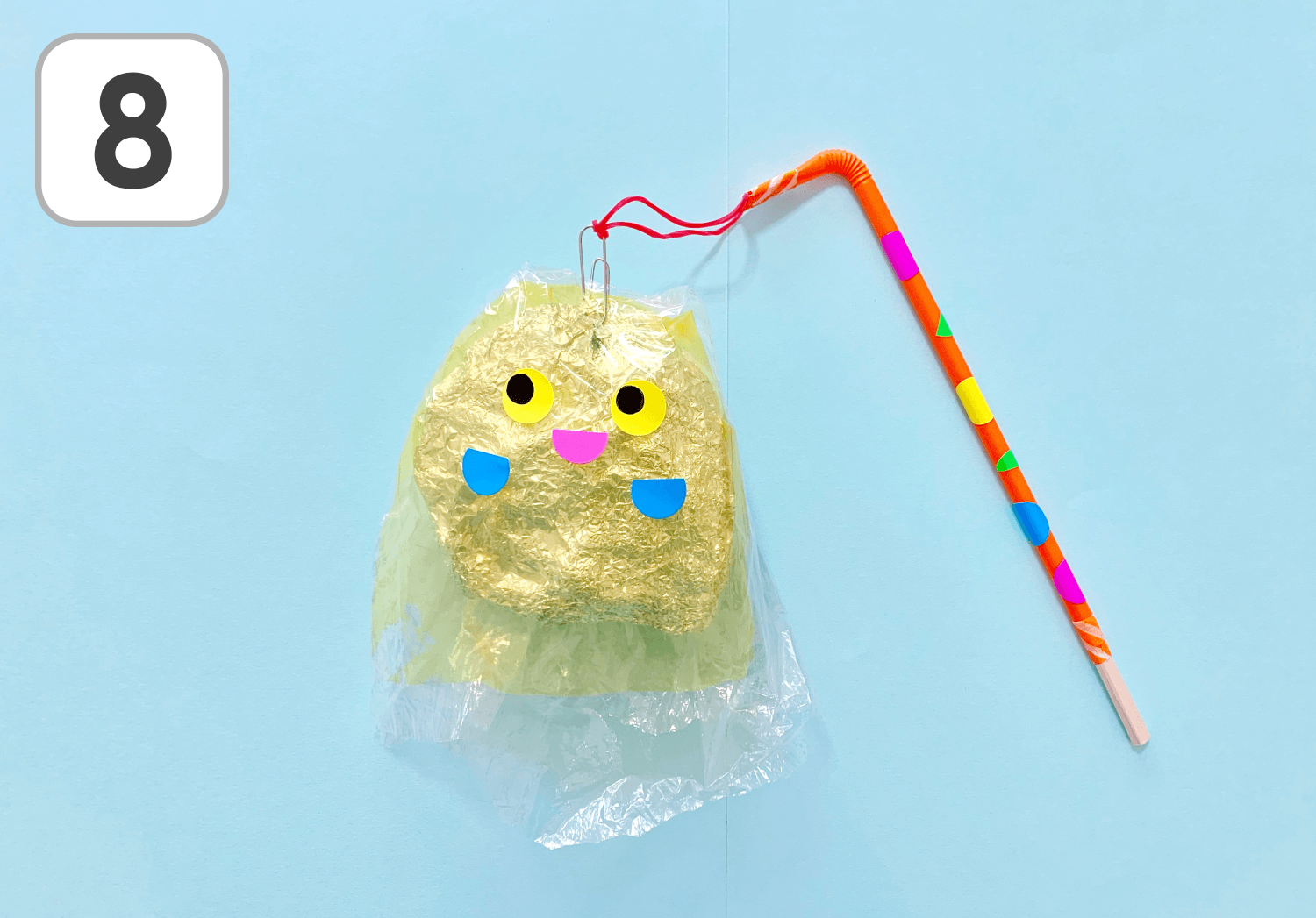 ⑧ストローの部分にシールやマスキングテープでデコレーションすれば…ゆらゆらおばけのできあがり!
