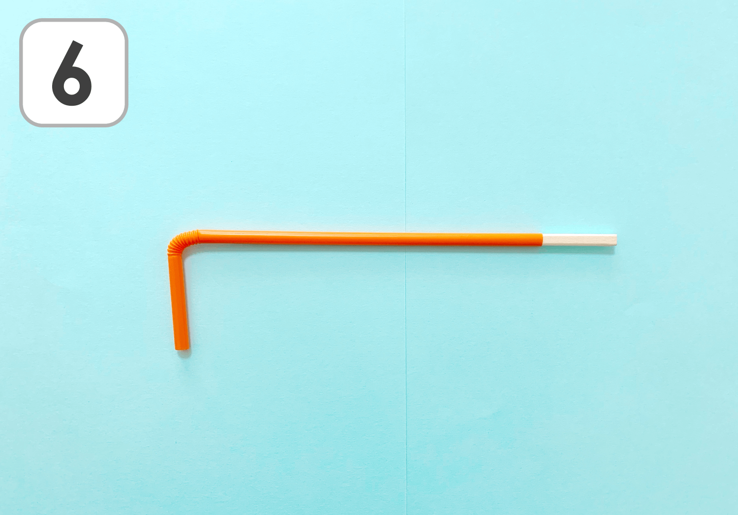 ⑥ストローの曲がる部分の手前まで、割りばしを入れます。
