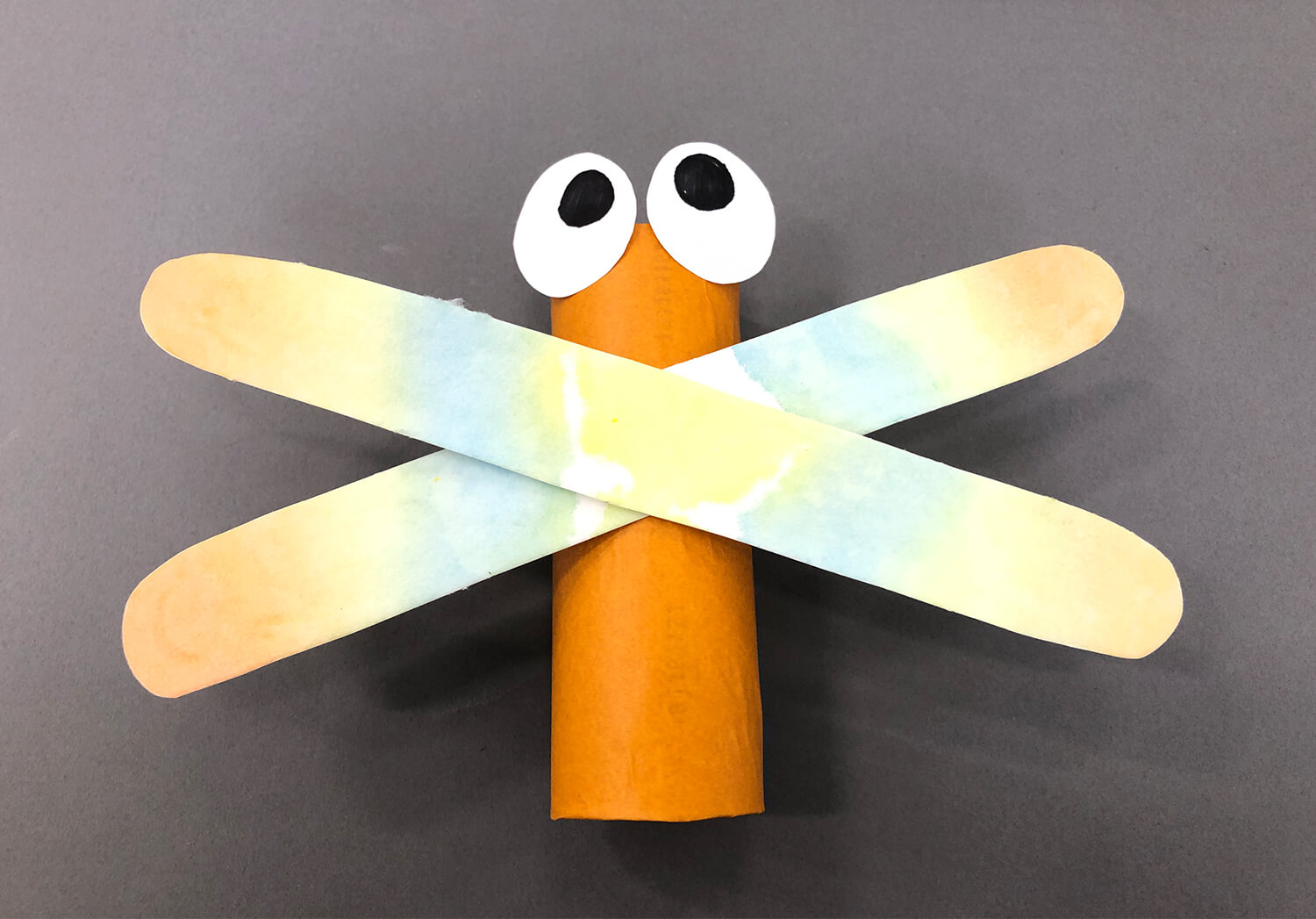 染め紙とトイレットペーパーの芯を使ったとんぼの製作。子ども同士で「こんな模様のとんぼが出来たよ!」と世界にたった一つのとんぼの製作を自慢したくなりそうですね♪