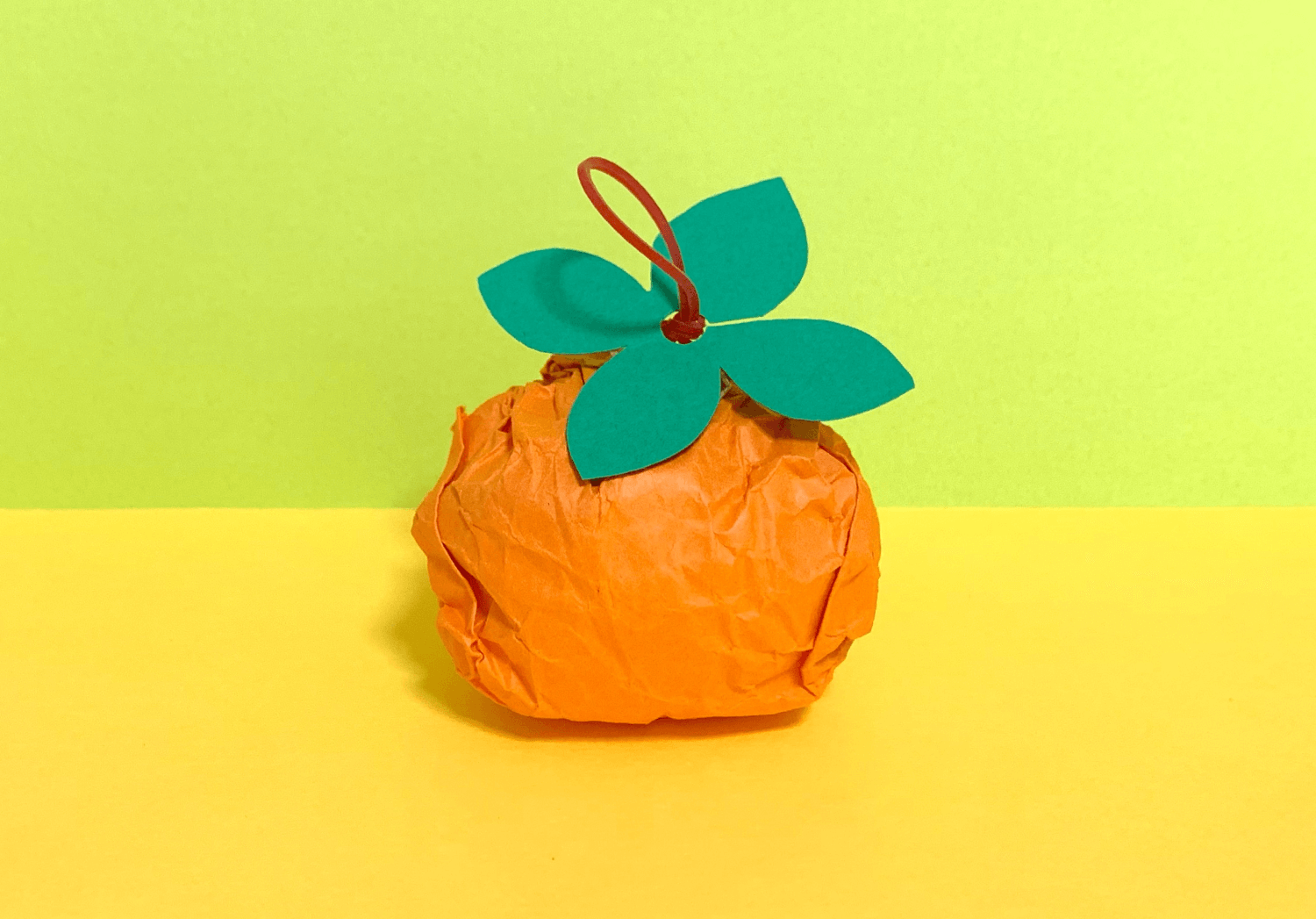 保育室でフルーツ狩りの気分を味わおう♪立体的でコロンと可愛い「柿」の製作アイデアです。できあがった柿は、大きな柿の木に引っ掛けて飾り、柿狩りごっこをしてみましょう。