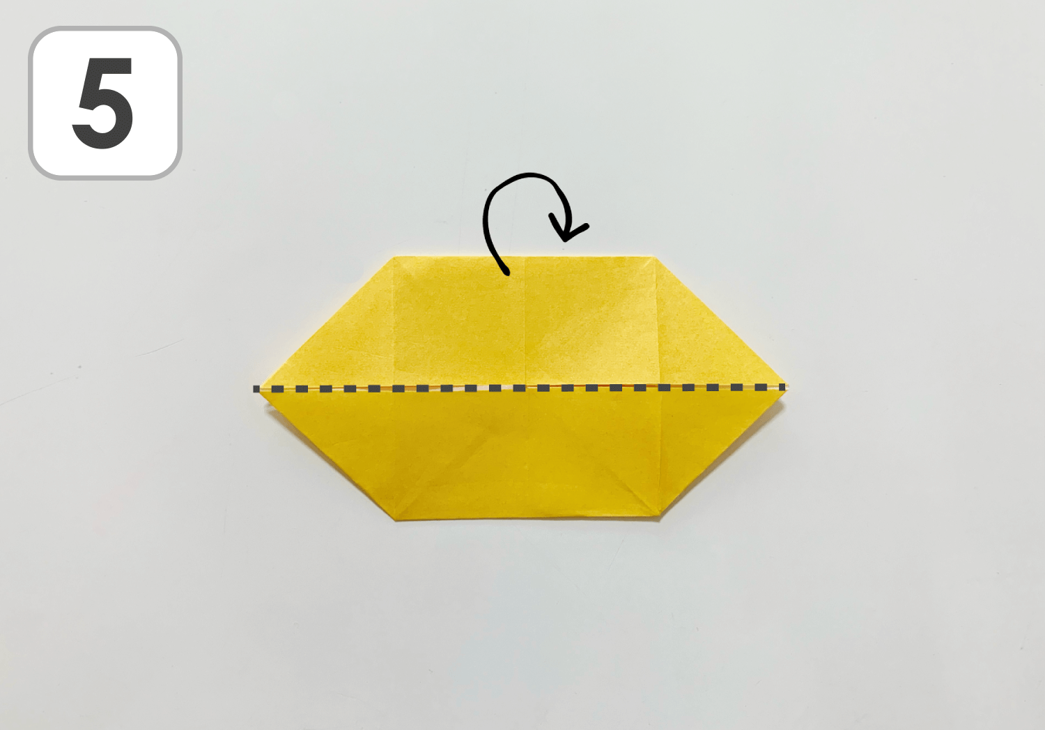 ⑤真ん中の線で山折りにします。