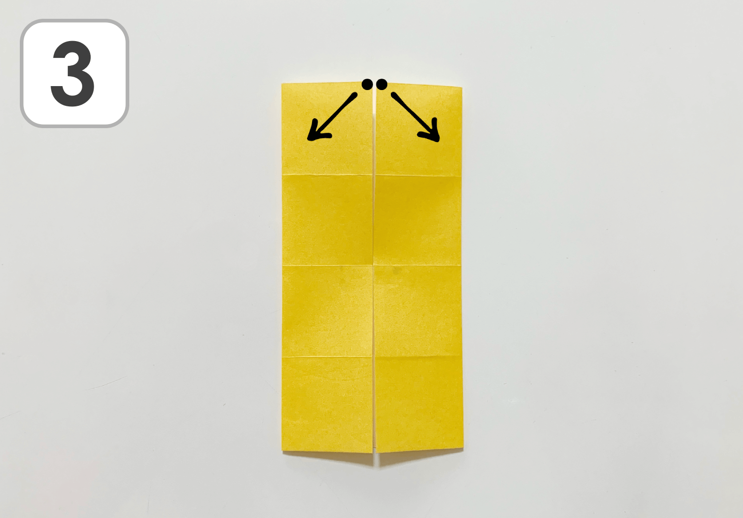 ①黄色のおりがみを1枚使います。