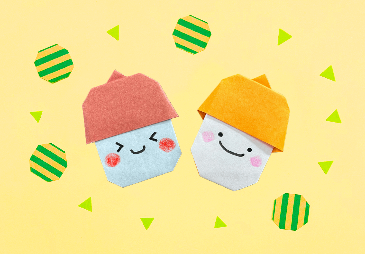 できあがったどんぐりに、お顔を描いてみよう!簡単な折り方で作ることができるので、たくさん作って並べたり、数えて遊ぶのにもおすすめです☆