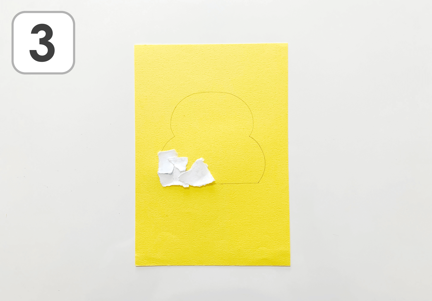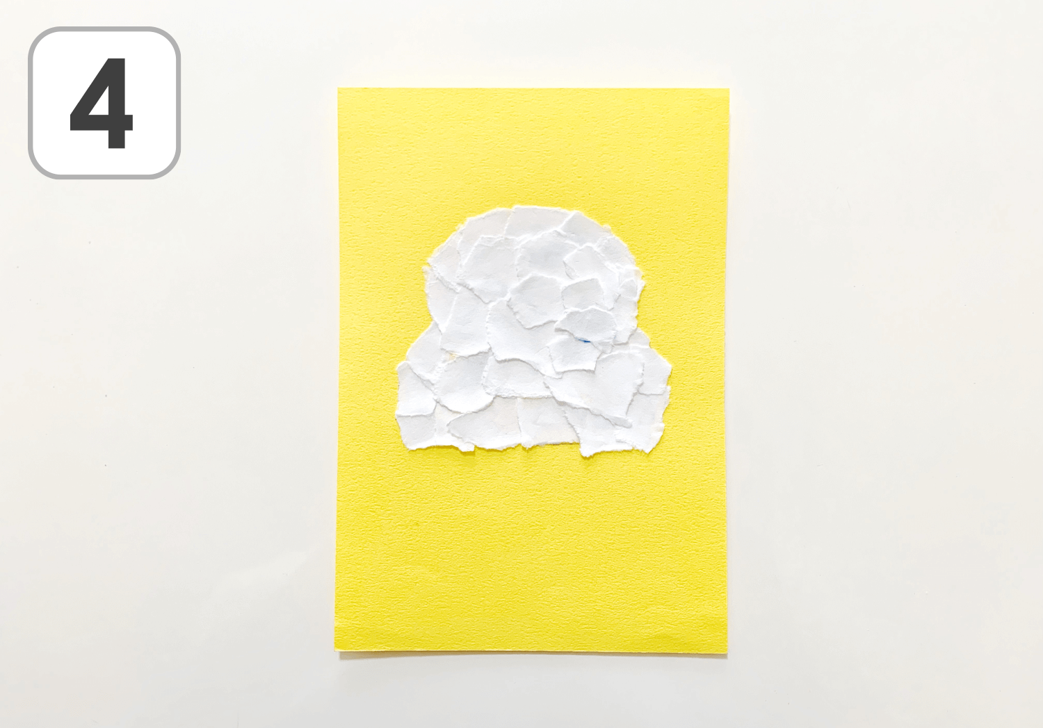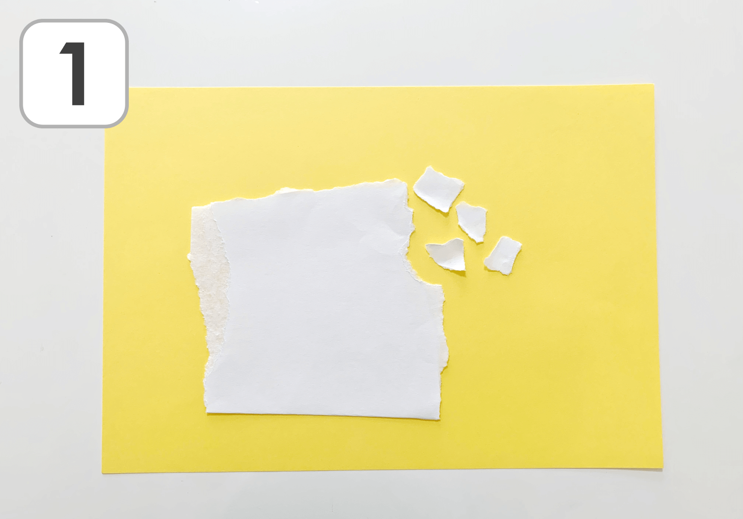 ①白の画用紙をちぎります。大きさや形に拘らず、自由にちぎりましょう。
