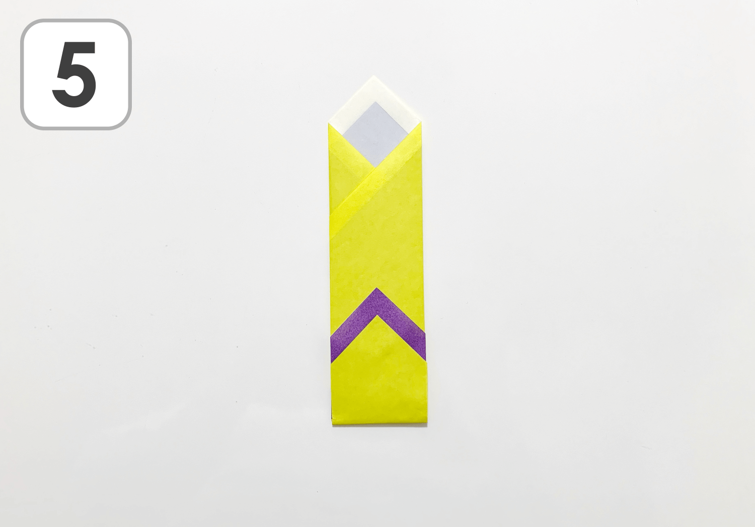 ④はみ出た部分を裏側に巻き付けるように折ります。