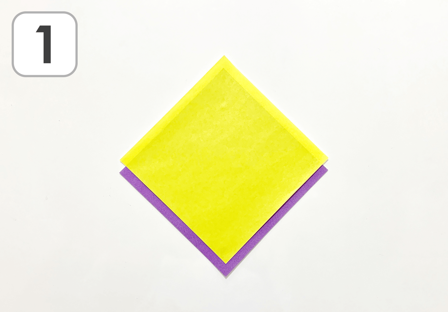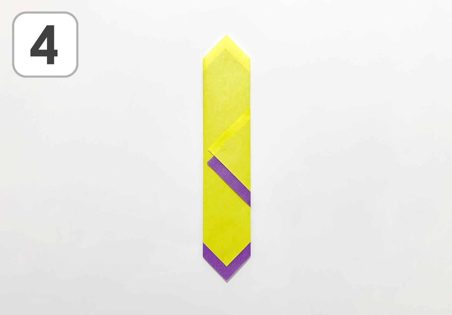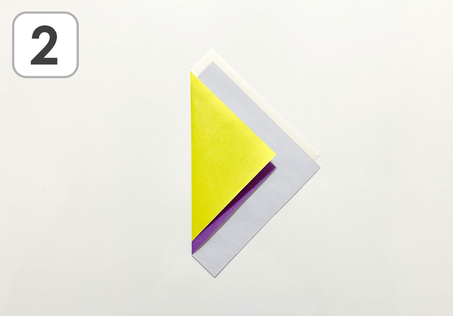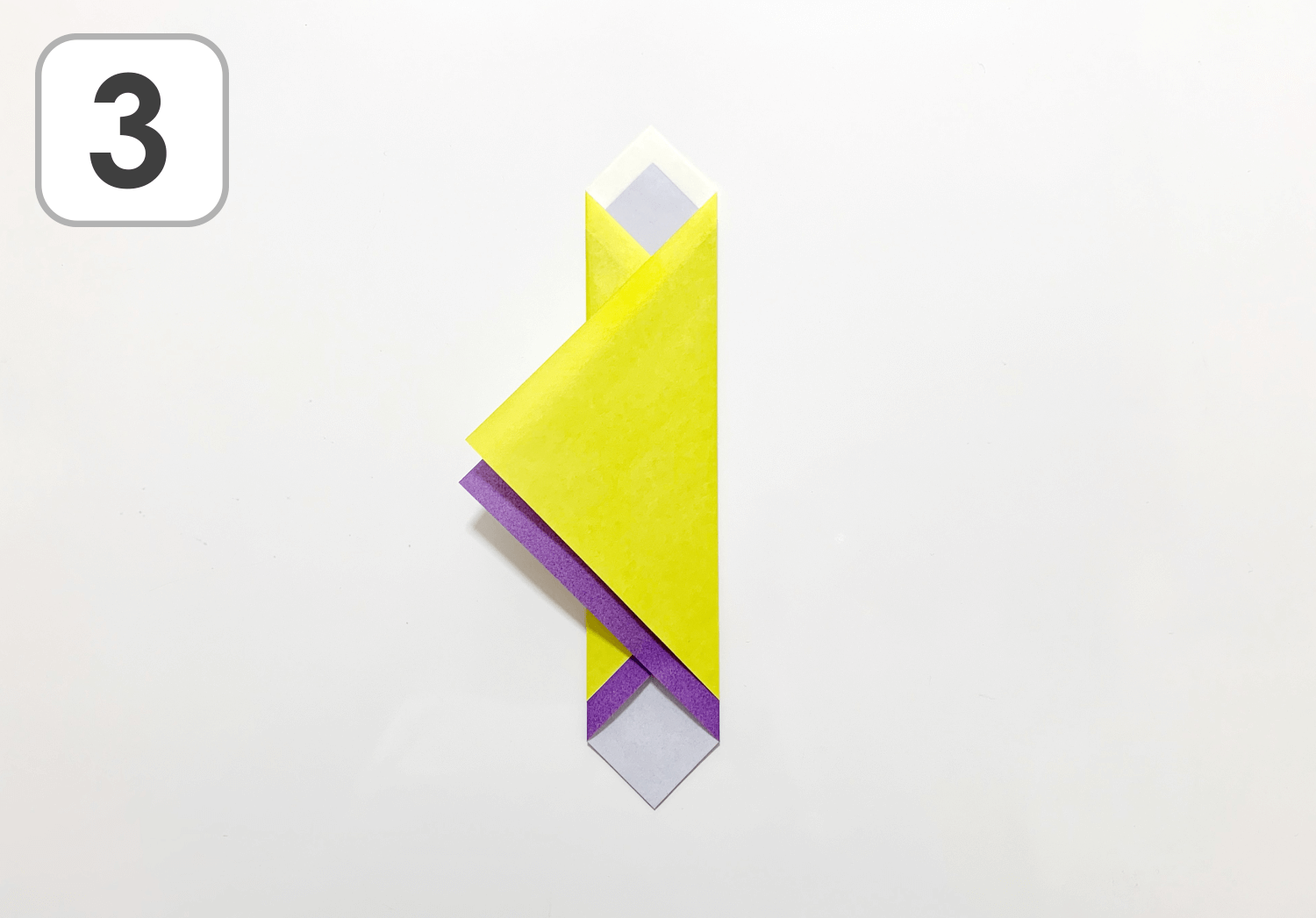 ②裏向きに置き、左側の角を中央から2センチくらいのところで右向きに折ります。