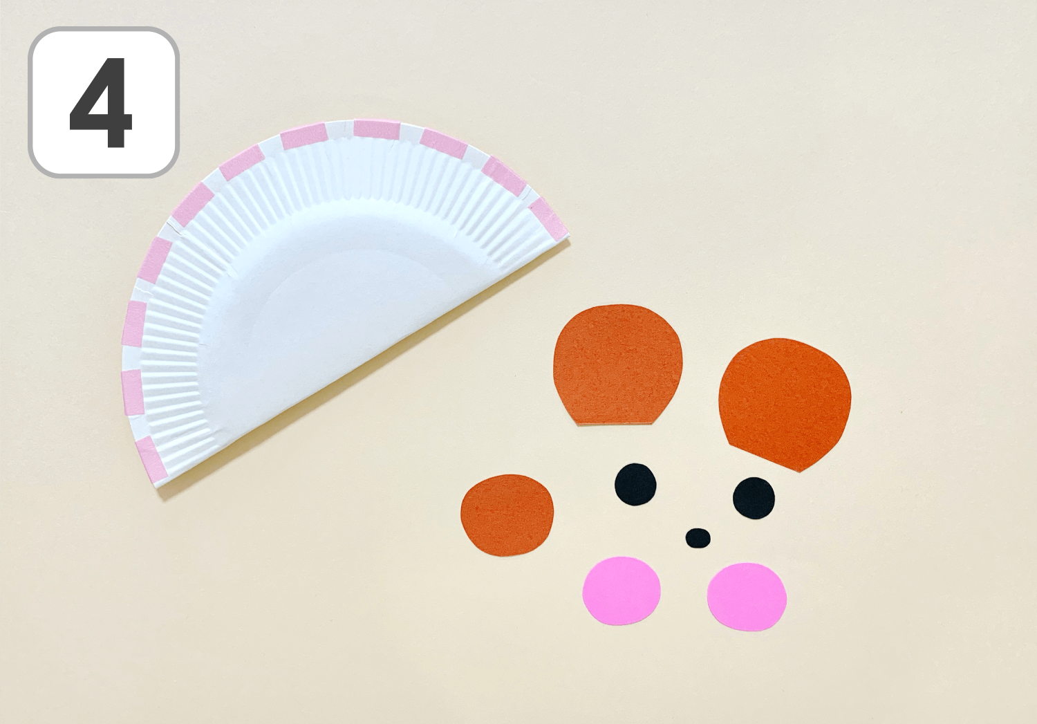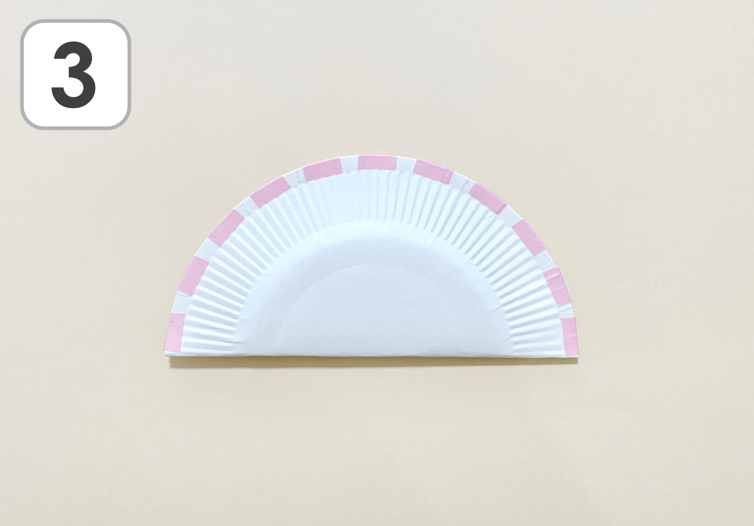 ③マスキングテープで、紙皿が開かないように貼り付けます。