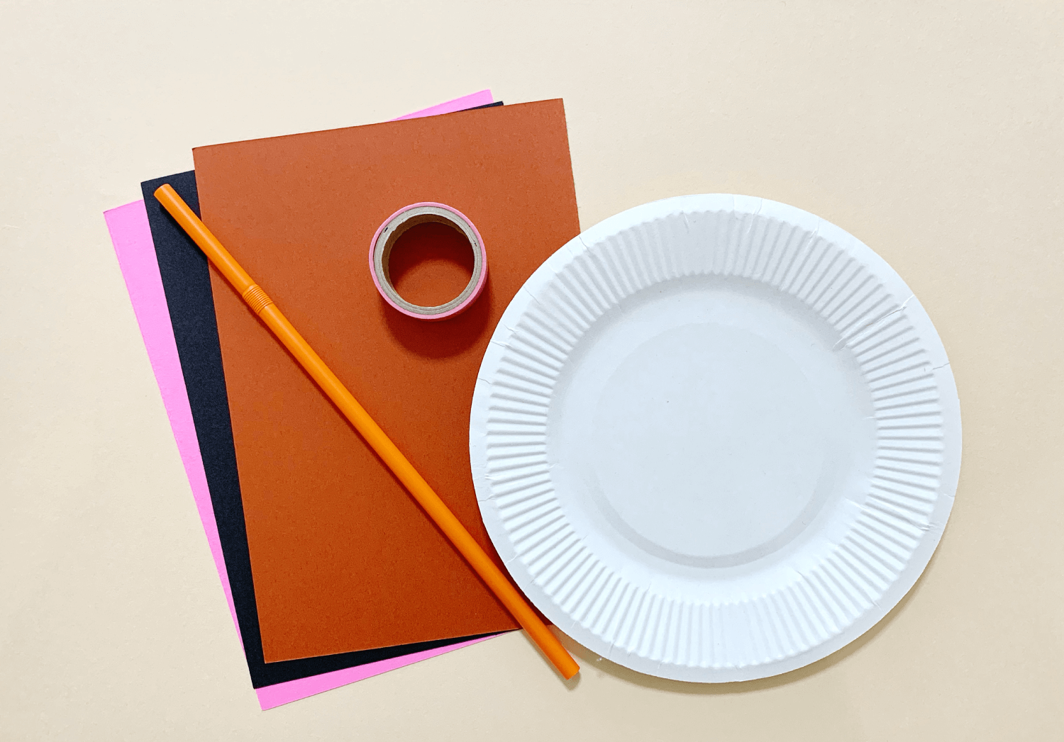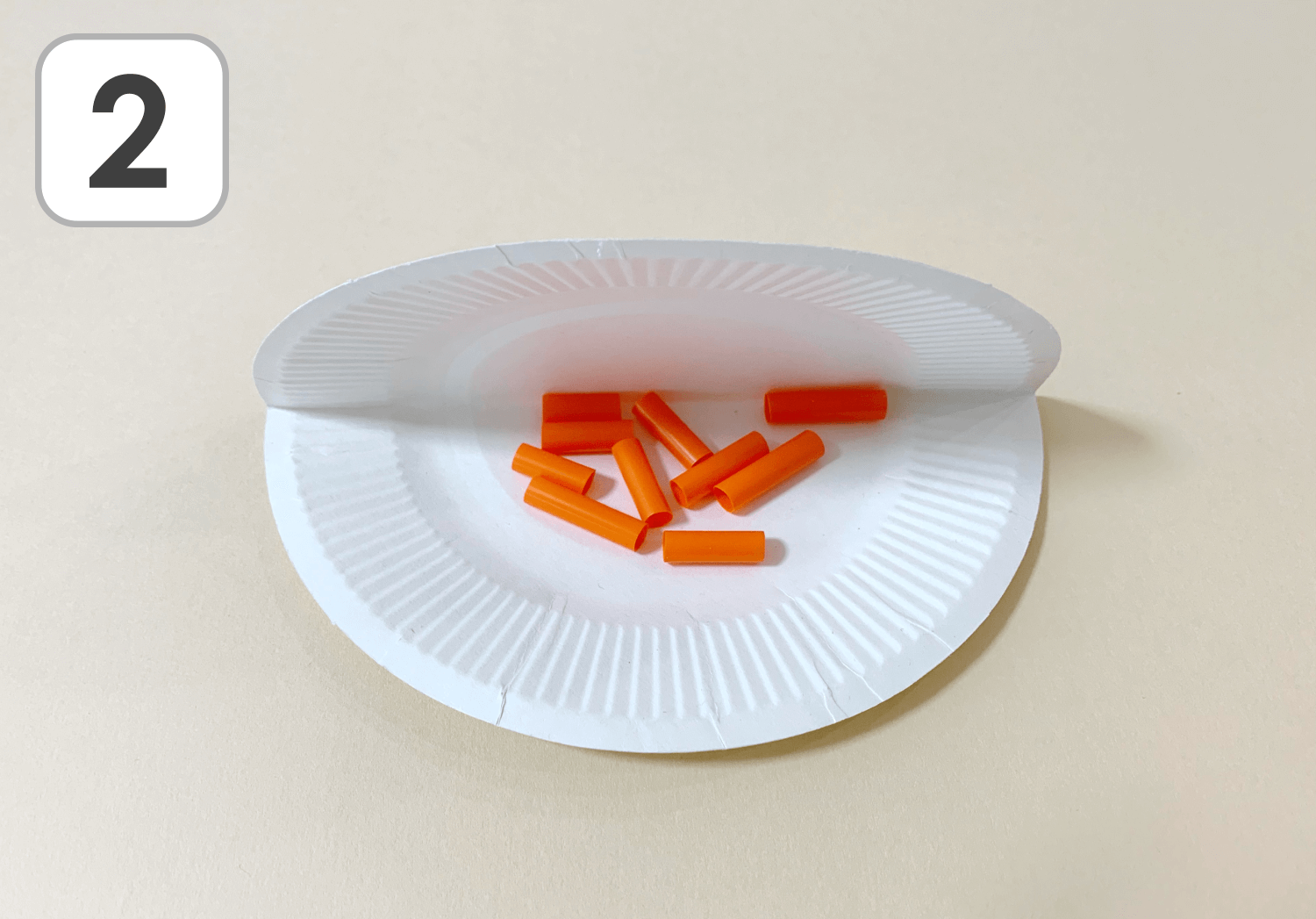 ②紙皿を半分に折り、1で切ったストローを入れます。