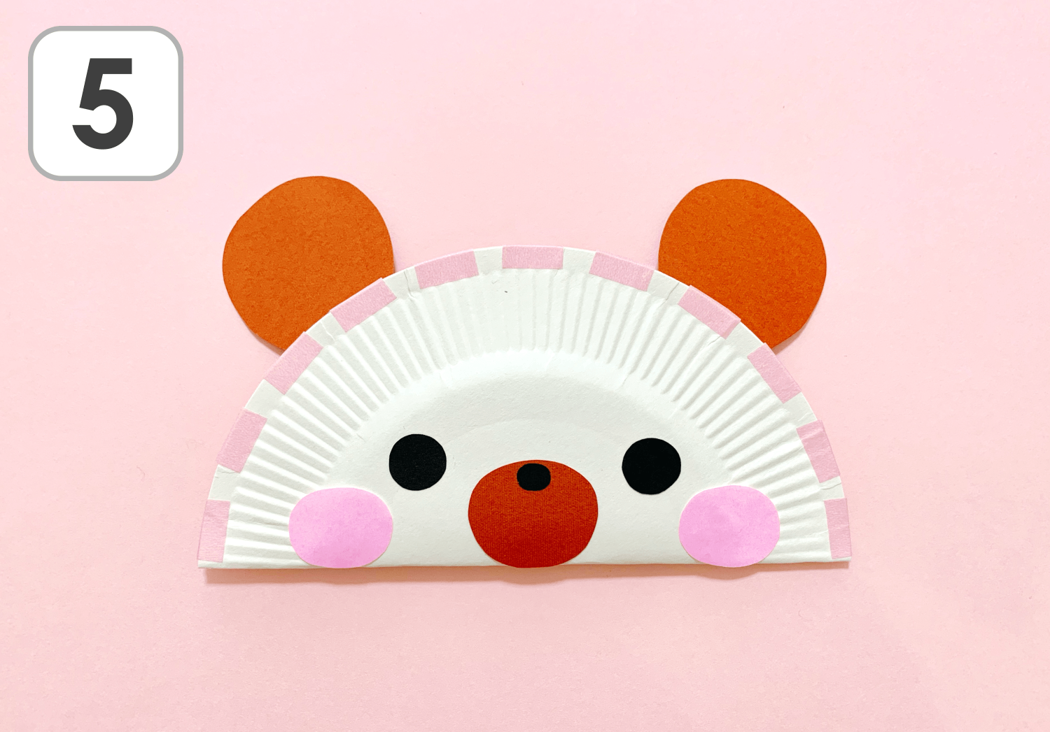 ⑤3で作った本体に貼り付ければ…くまさんタンバリンのできあがり!