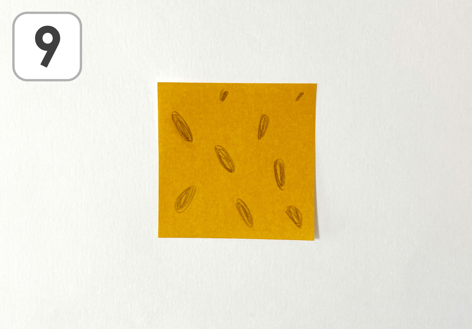 ②黒の色鉛筆で、”こんにゃくのてんてん”を描くとできあがり!