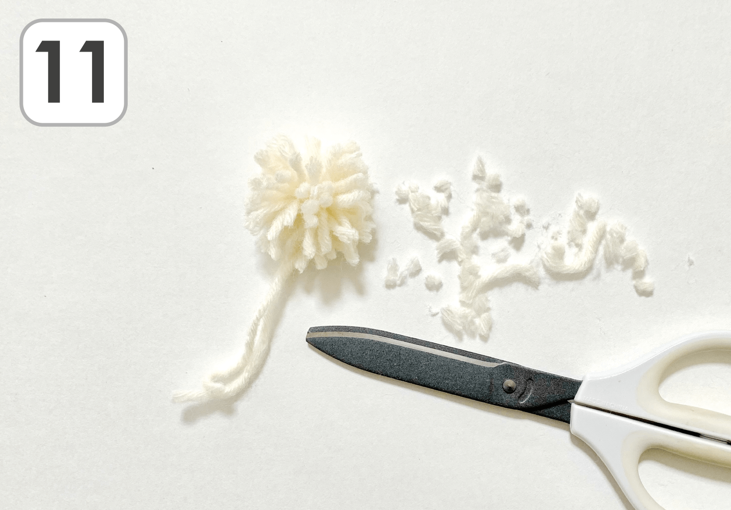 ⑪ポンポンが丸くなるように、毛糸の長さを整えます。