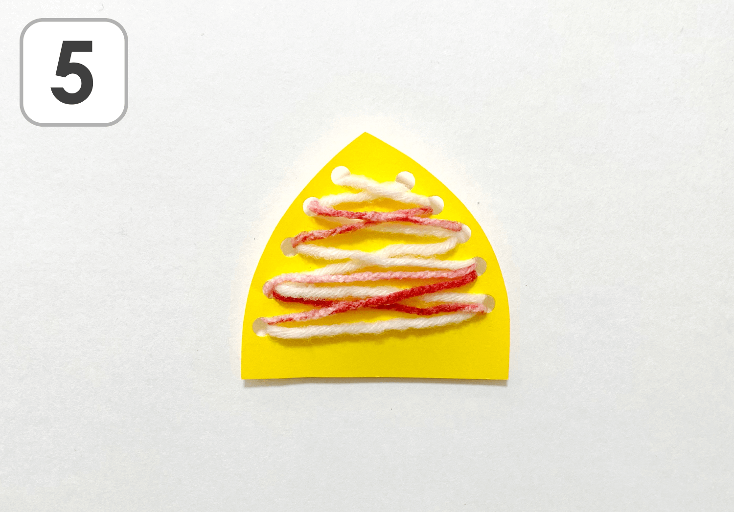 ⑫5で作った台紙の上にセロハンテープで貼り付ければ、ニット帽子のできあがり!