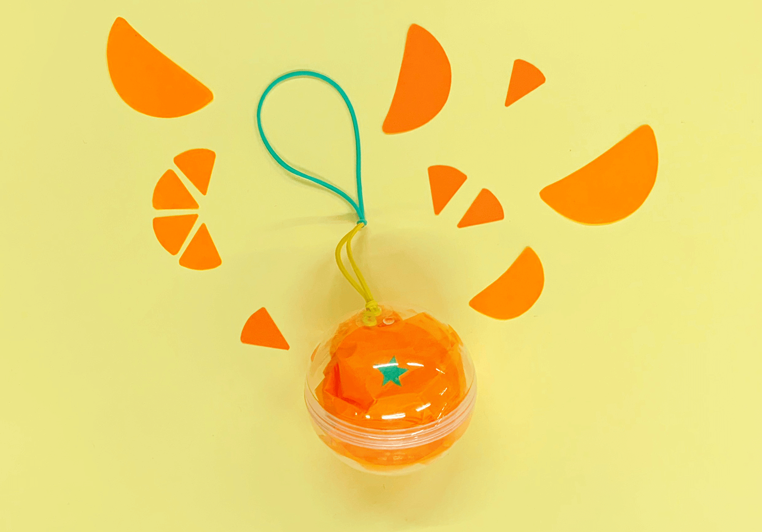 2月の製作➡ガチャガチャカプセルのミカンヨーヨー