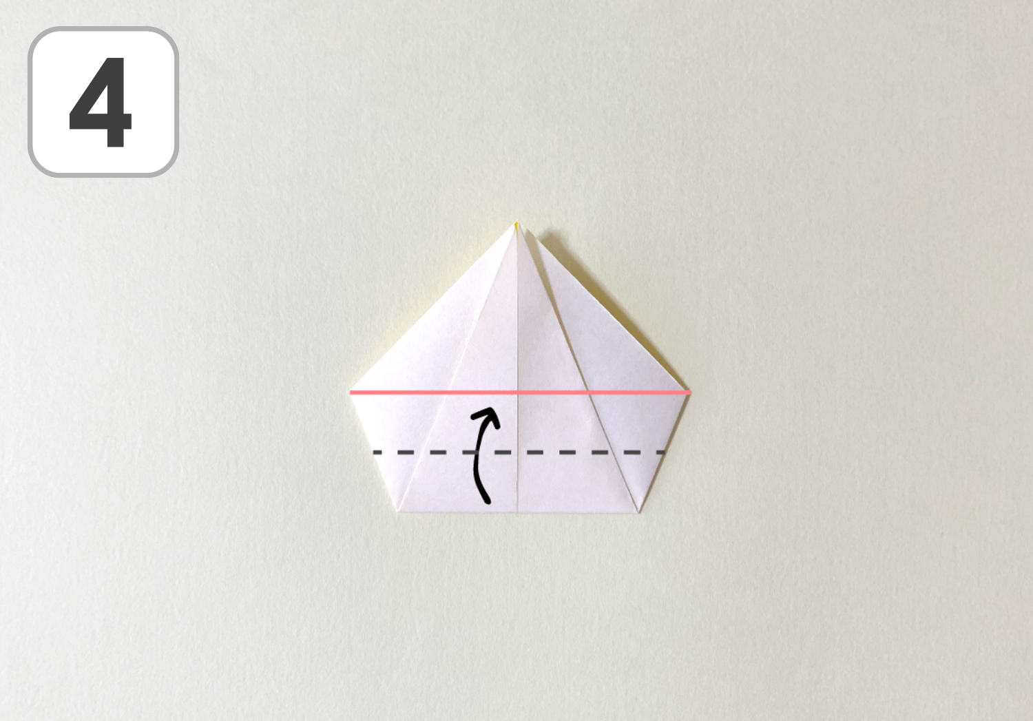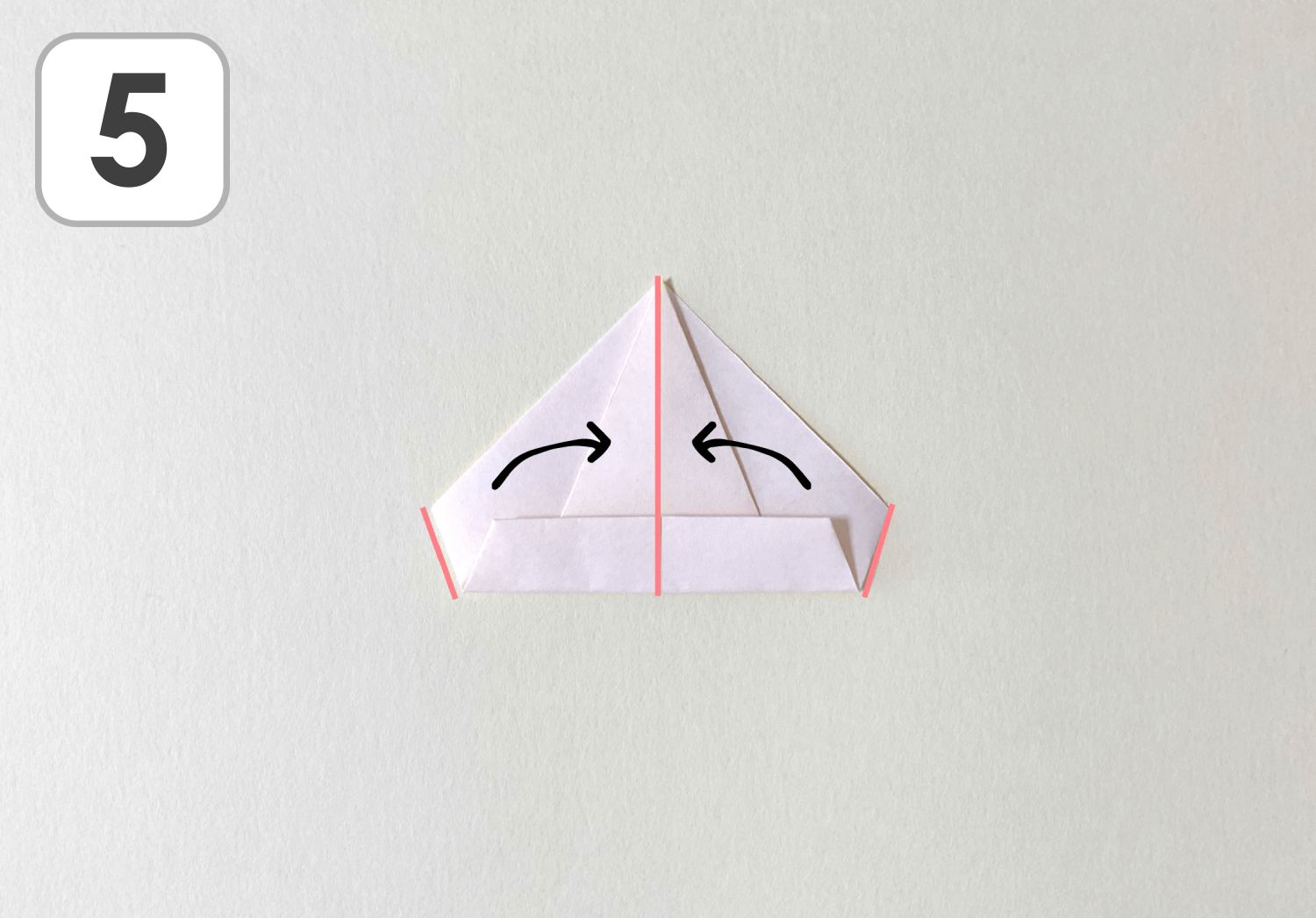 ⑤左右の辺を中央のピンクの線に合わせるように折ります。