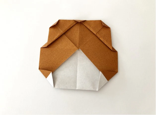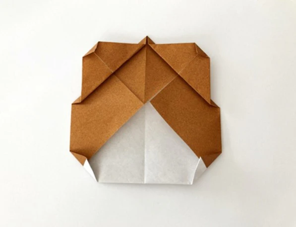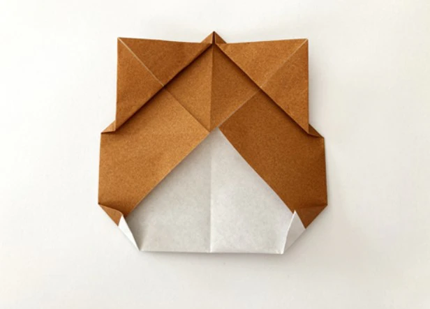 ⑨白い角を2回小さく折ったら、くまの顔の完成です。目や口を書いても可愛いですよ♪