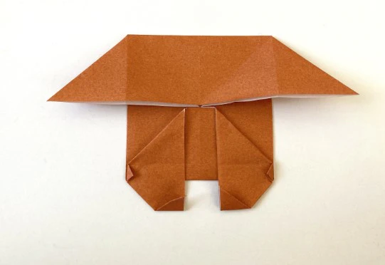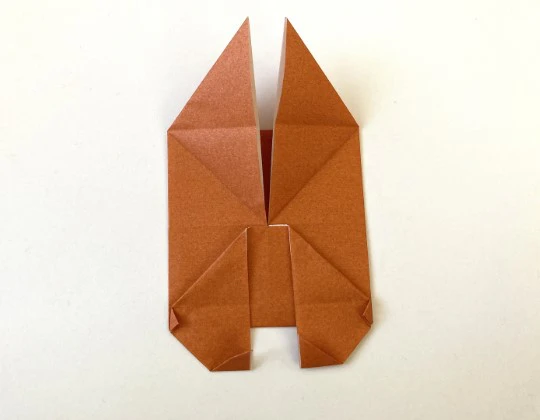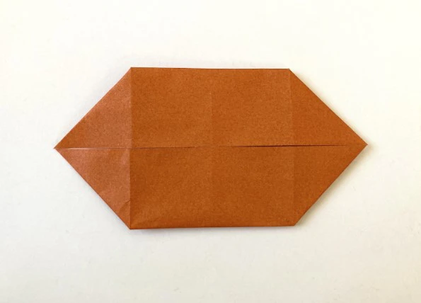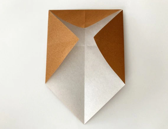 ⑦下部分の両角を、上に向かって少し折ります。また、左右の出っ張っている部分も内側に折ります。