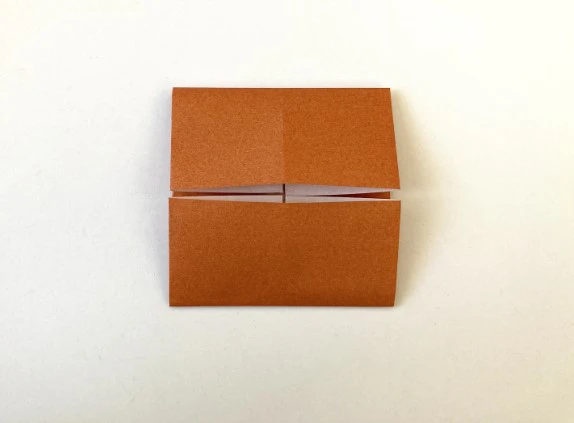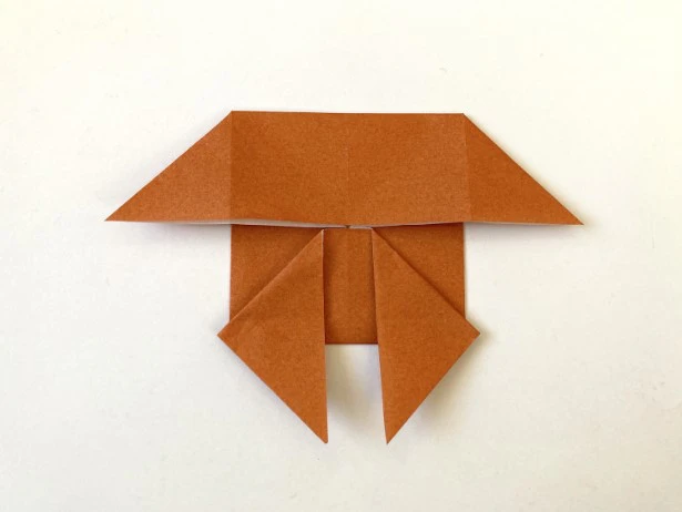 ⑥下部分の両角を、下に向かって折ります。このとき、1.5~2センチほど隙間を作るのがポイントです。