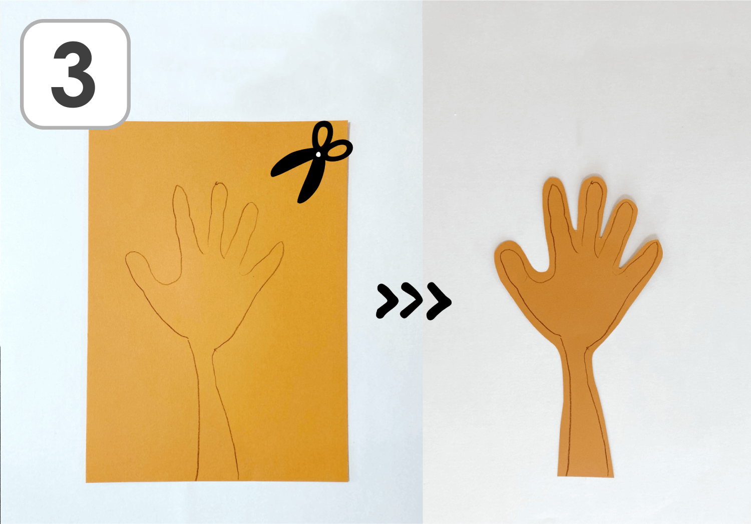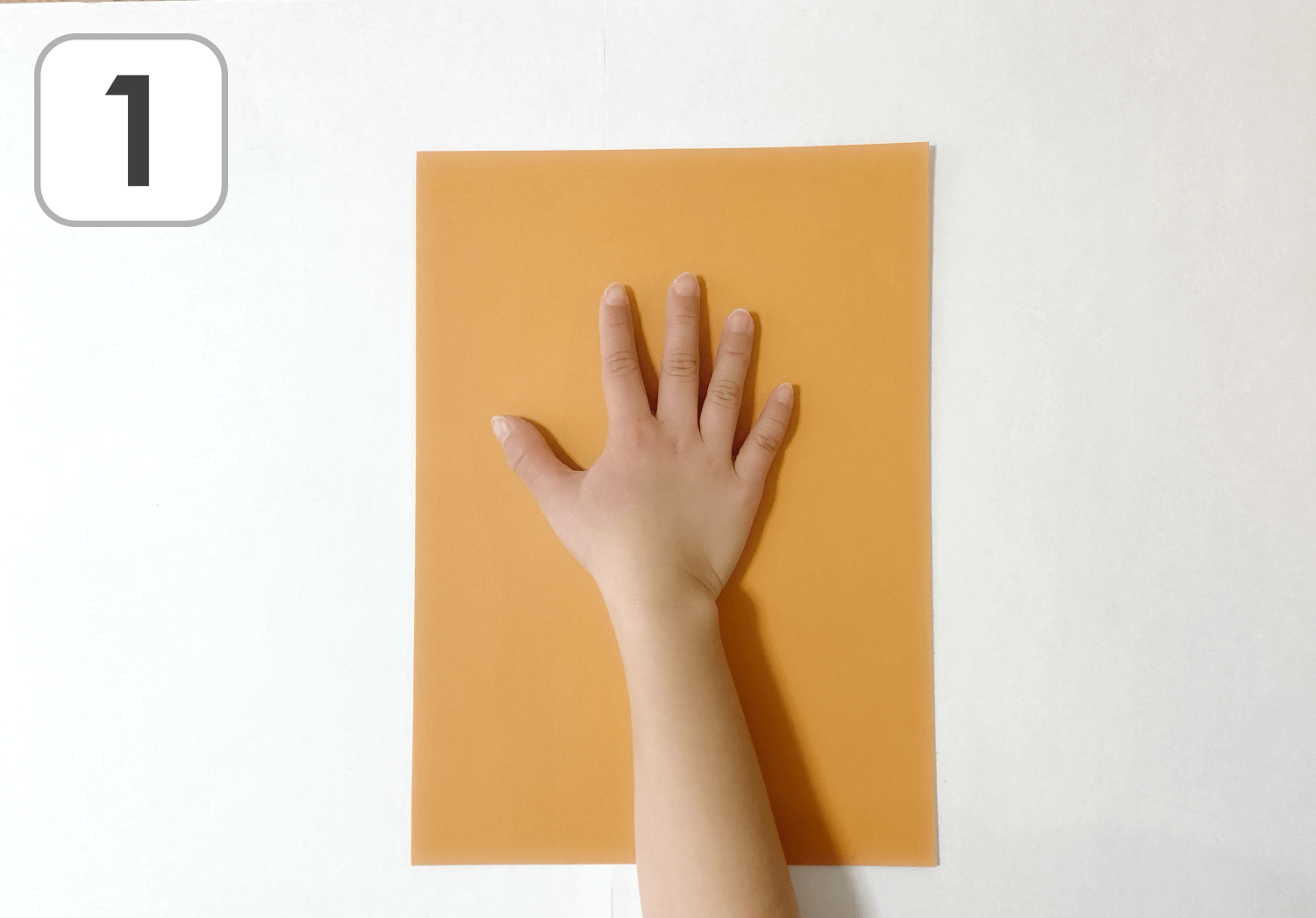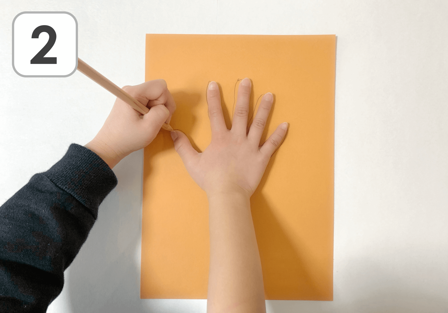 茶色の色画用紙を用意し、利き手と反対の手を置きます。