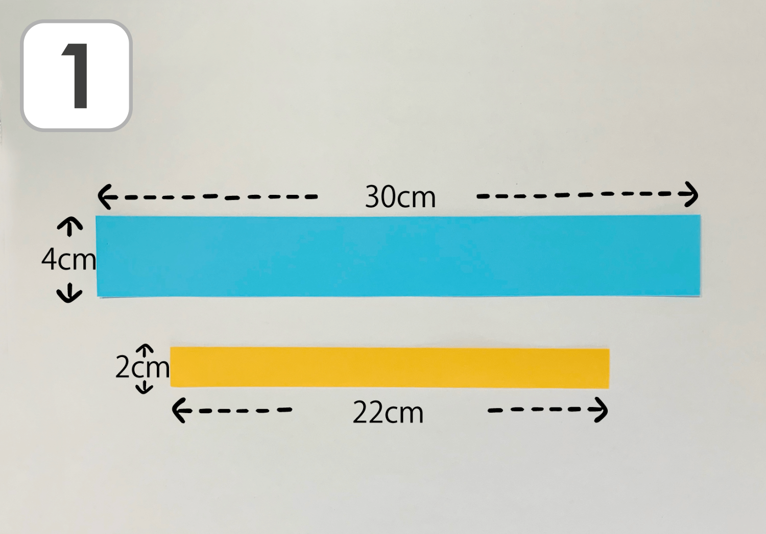 ②水色の色画用紙の端と端をのりで貼り、輪を作ります。