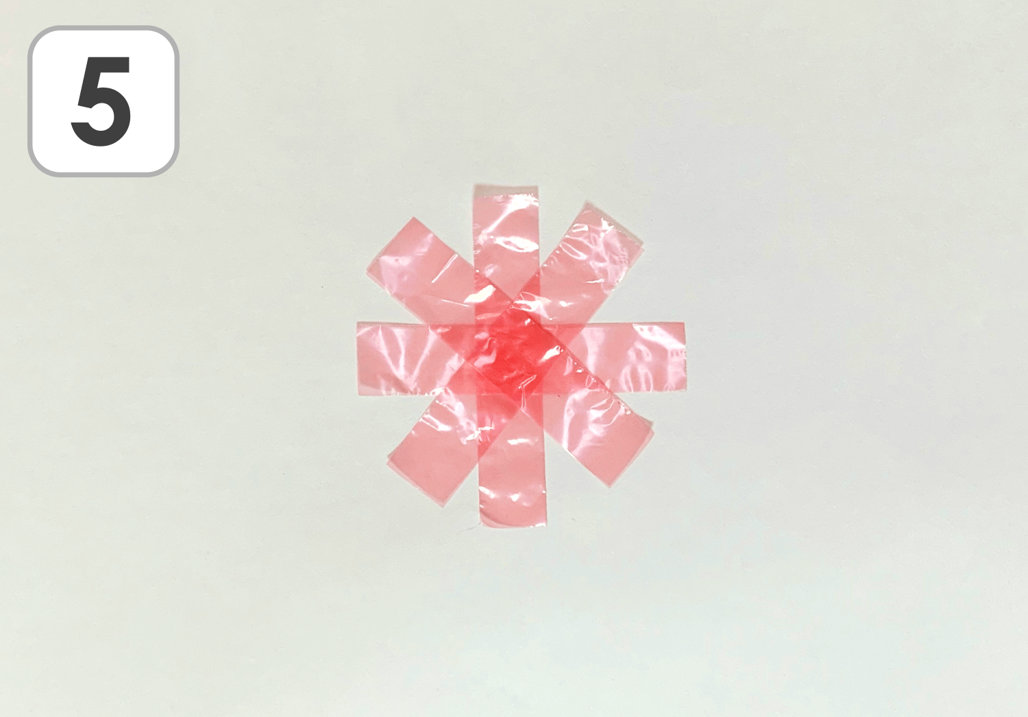 ⑤次に×の形に置き、中央をのりで貼り付けます。