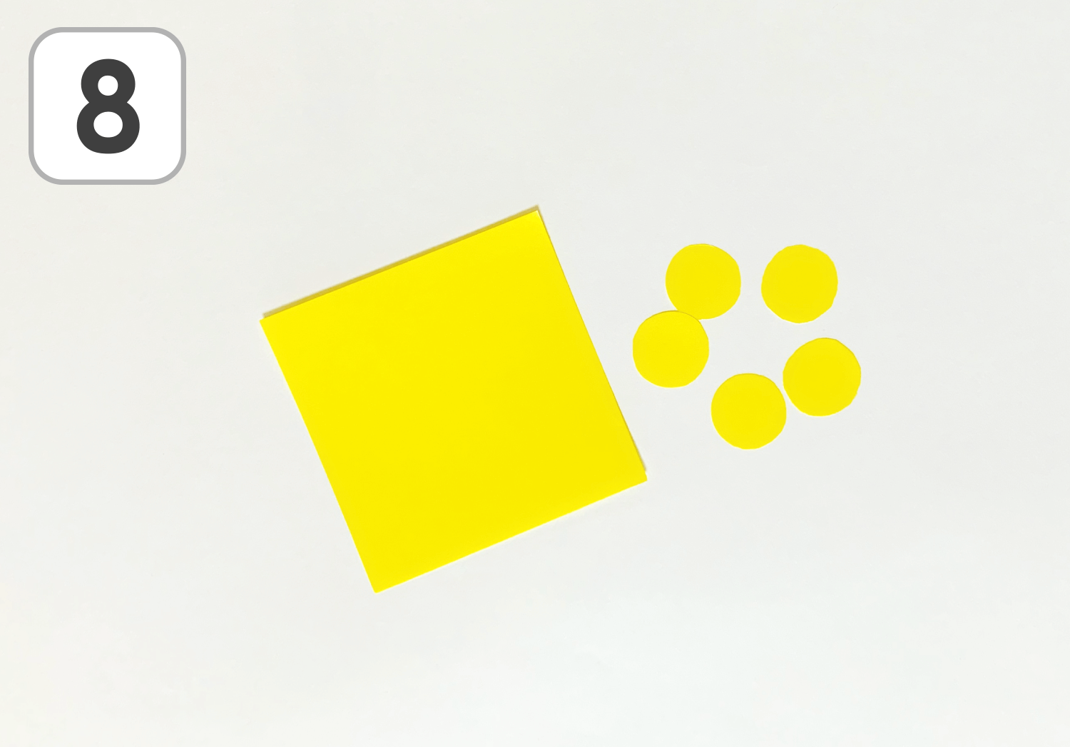 ⑧黄色のおりがみで丸型を切り出します。