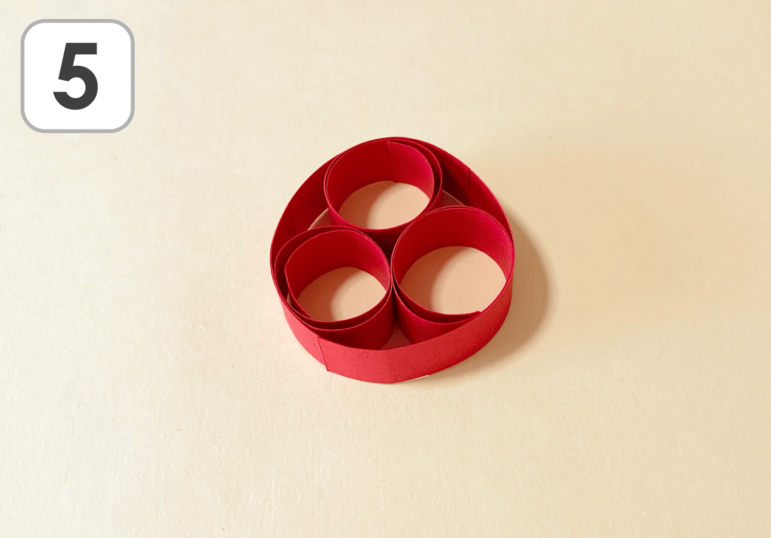 細長く切った赤の画用紙の残りの1本の、端と端をのりで接着して輪にします。