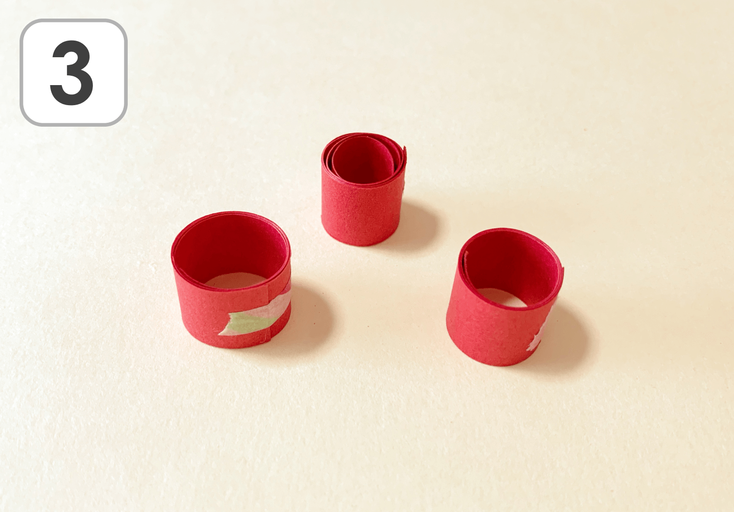 同じ方法で3つ作ります。しばらくこのまま置いておき、紙に癖を付けます。
