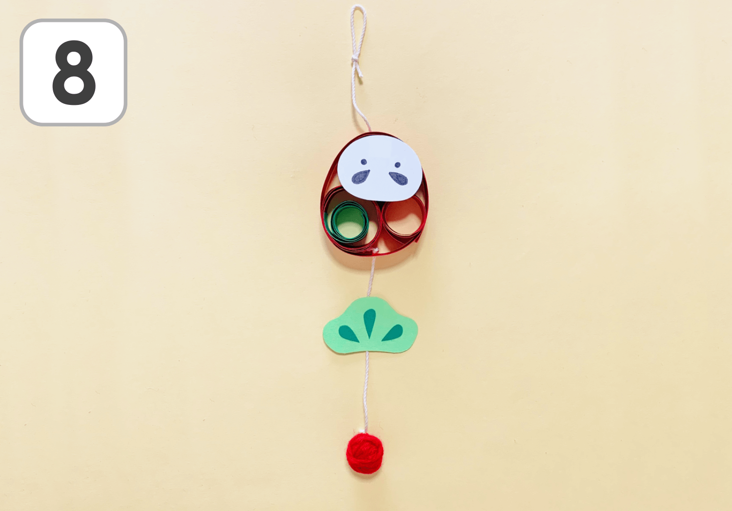 ⑧クイリングだるまの吊るし飾りのできあがり!