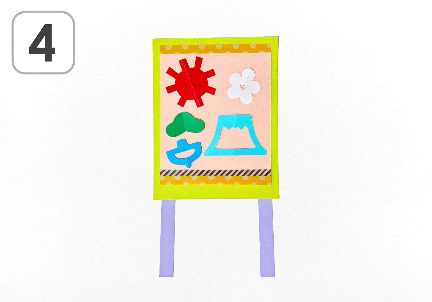 もう一色の色画用紙を細長く切り、下側の左右に貼り付けると本体は完成です。