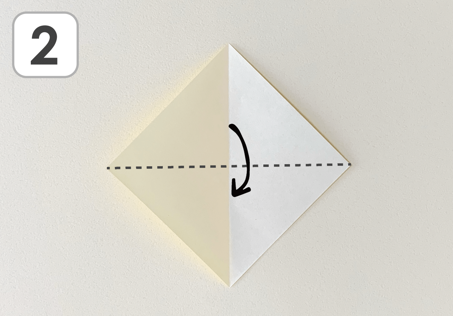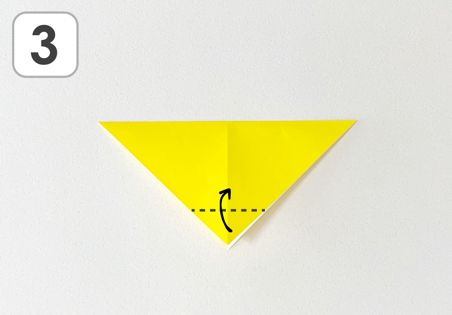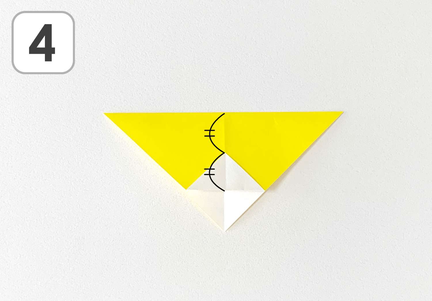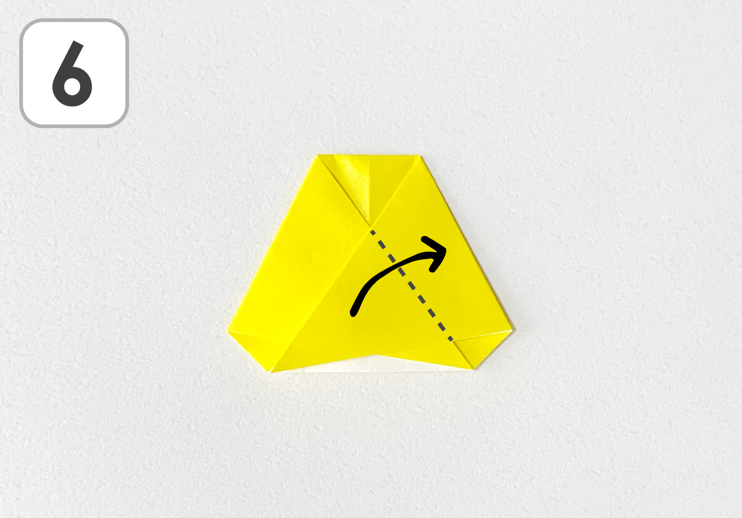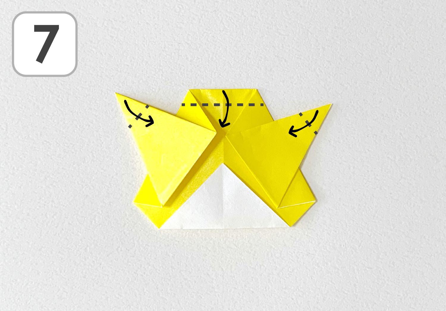 ⑨裏返して、白い部分の角を山折すると、とらの【顔】の部分が完成です。