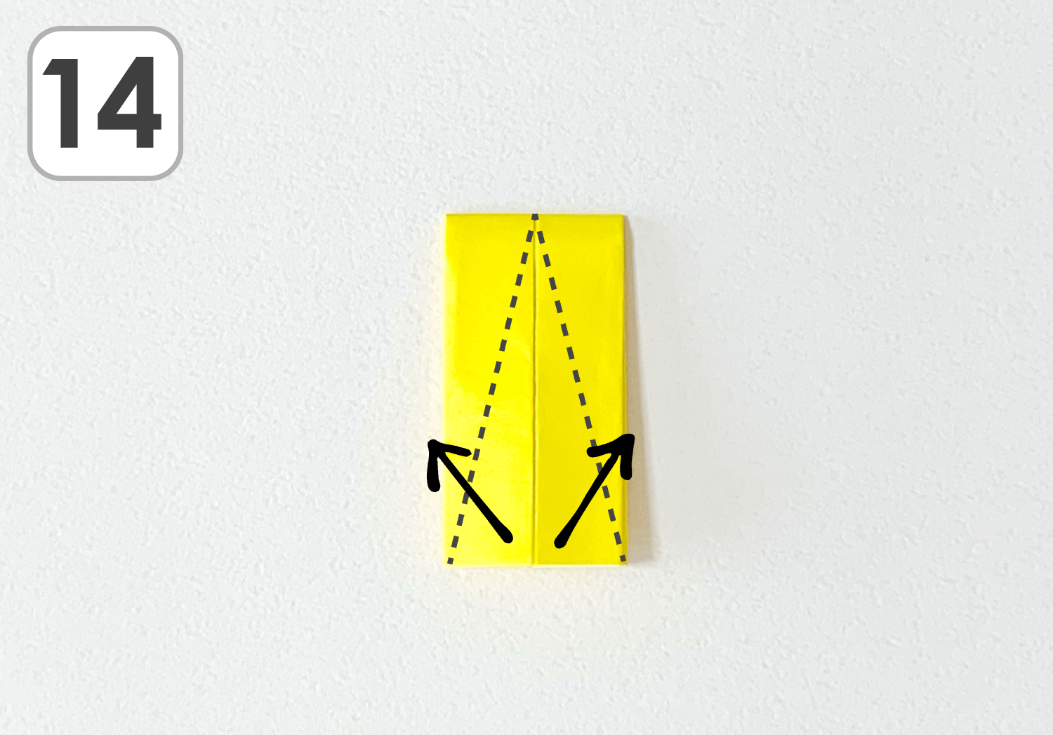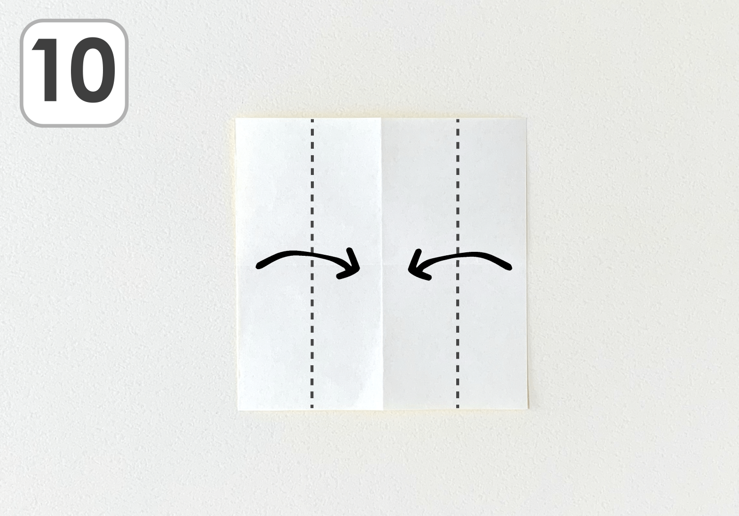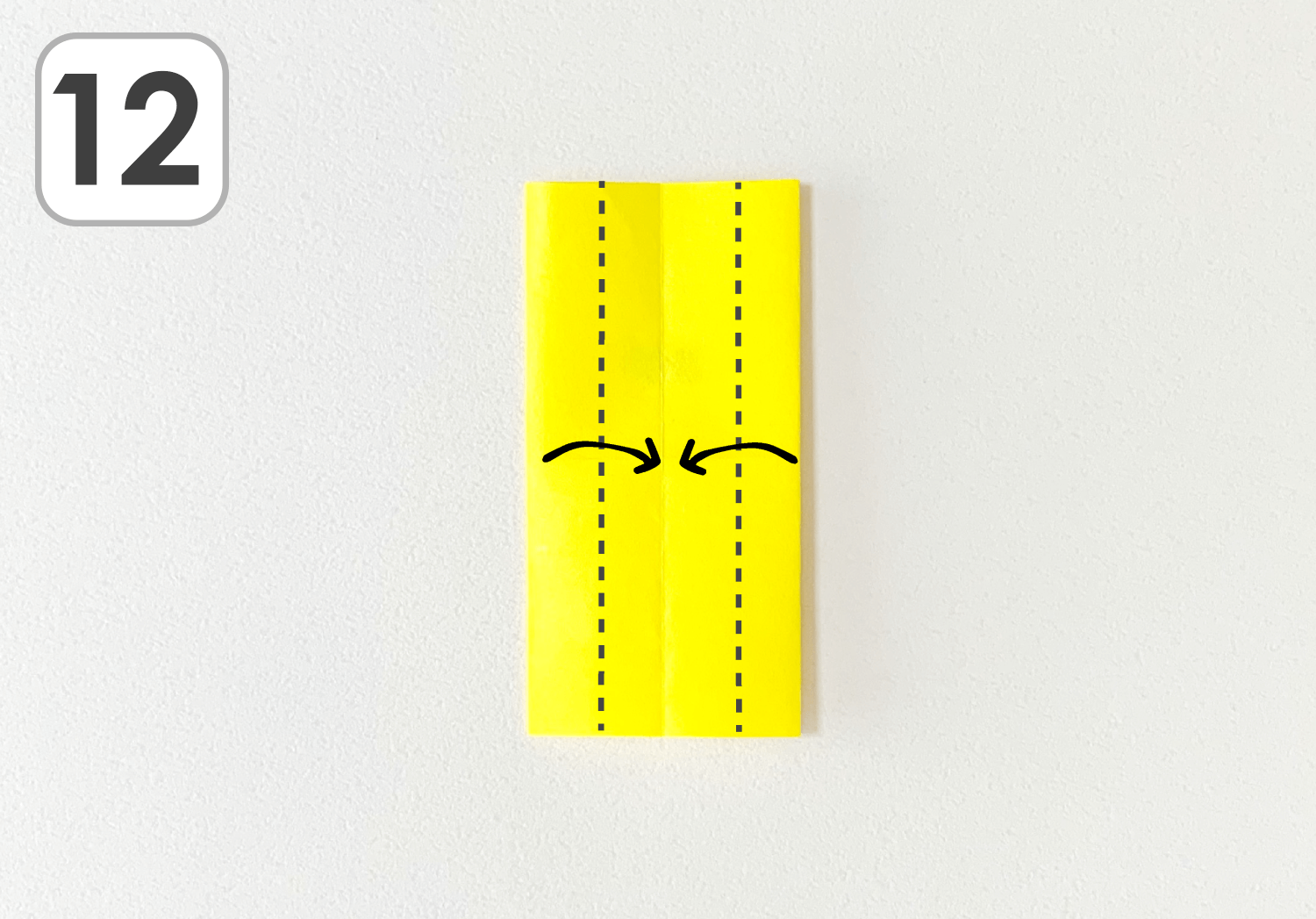 ⑫左右の辺を、中央の折り目に向かって折ります。