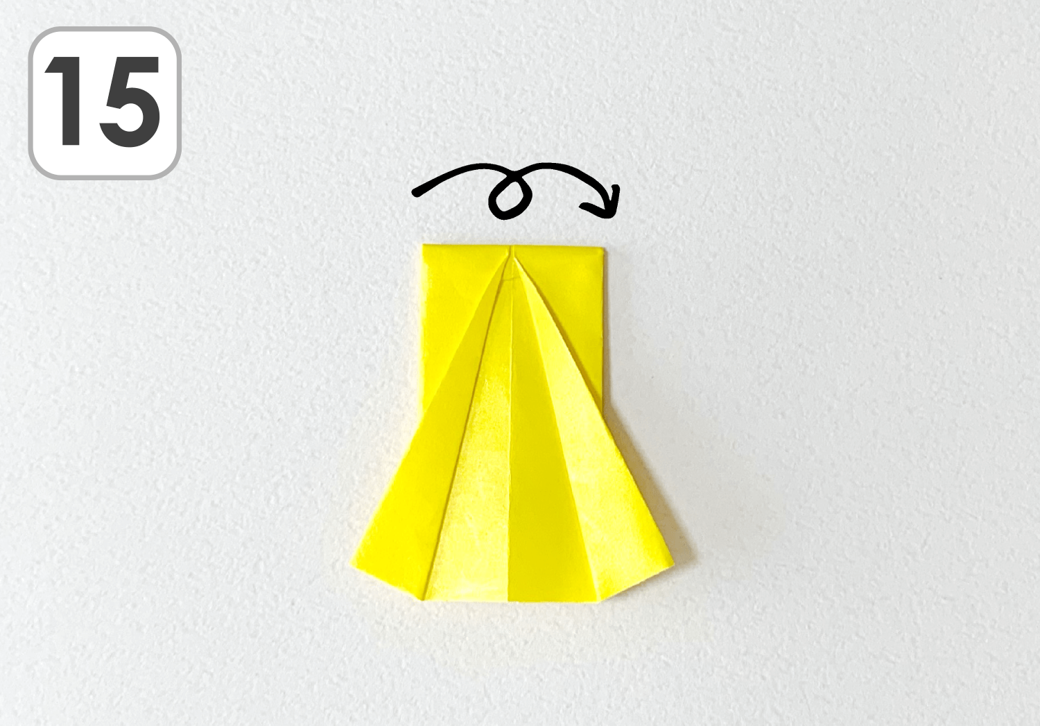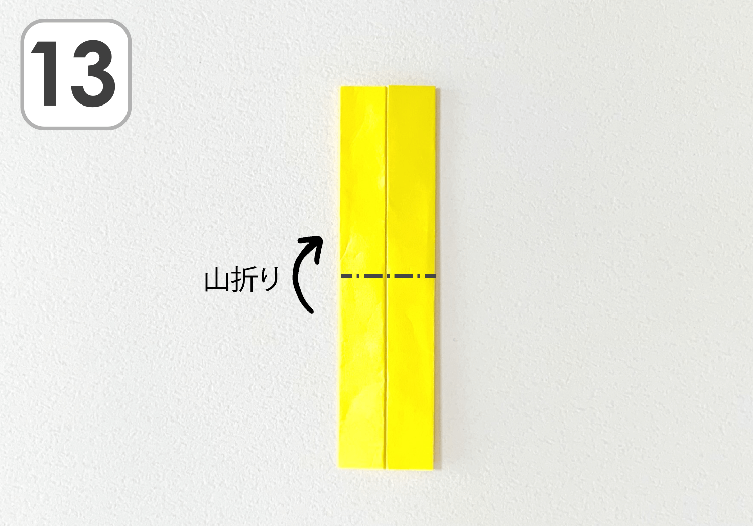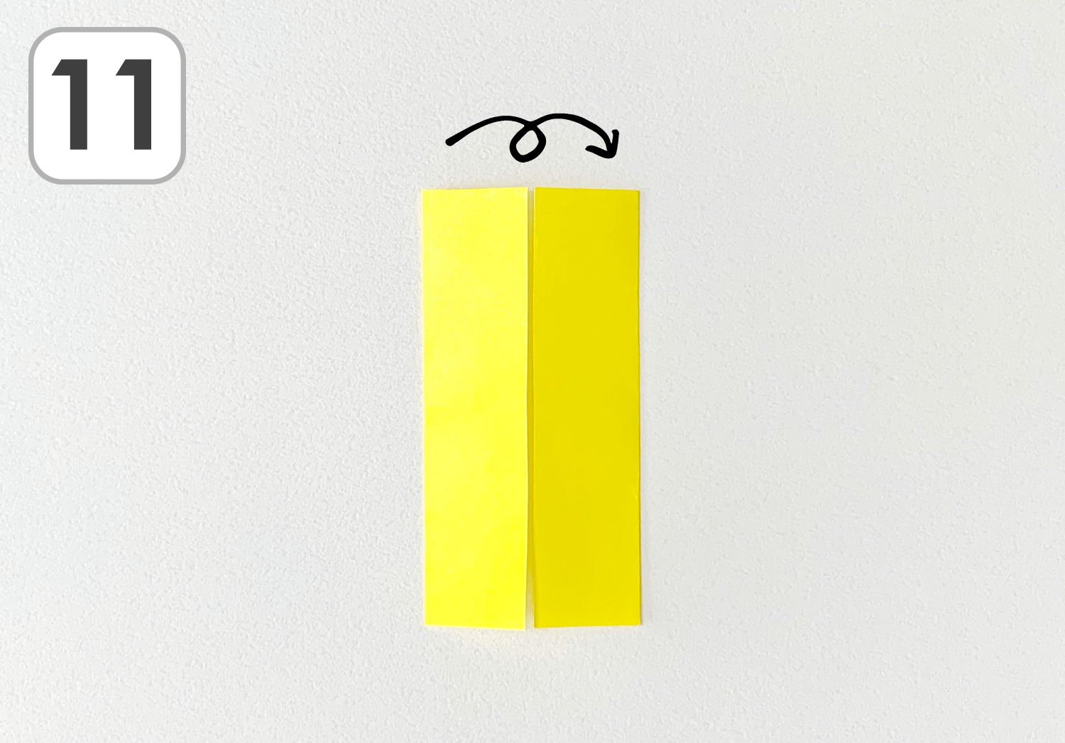 ⑫左右の辺を、中央の折り目に向かって折ります。