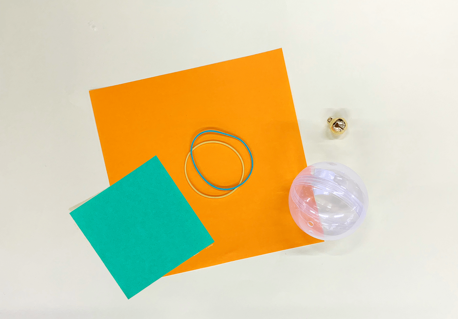 ②ガチャガチャカプセルを外して、中にできた空間に鈴を入れ軽く包みます。
