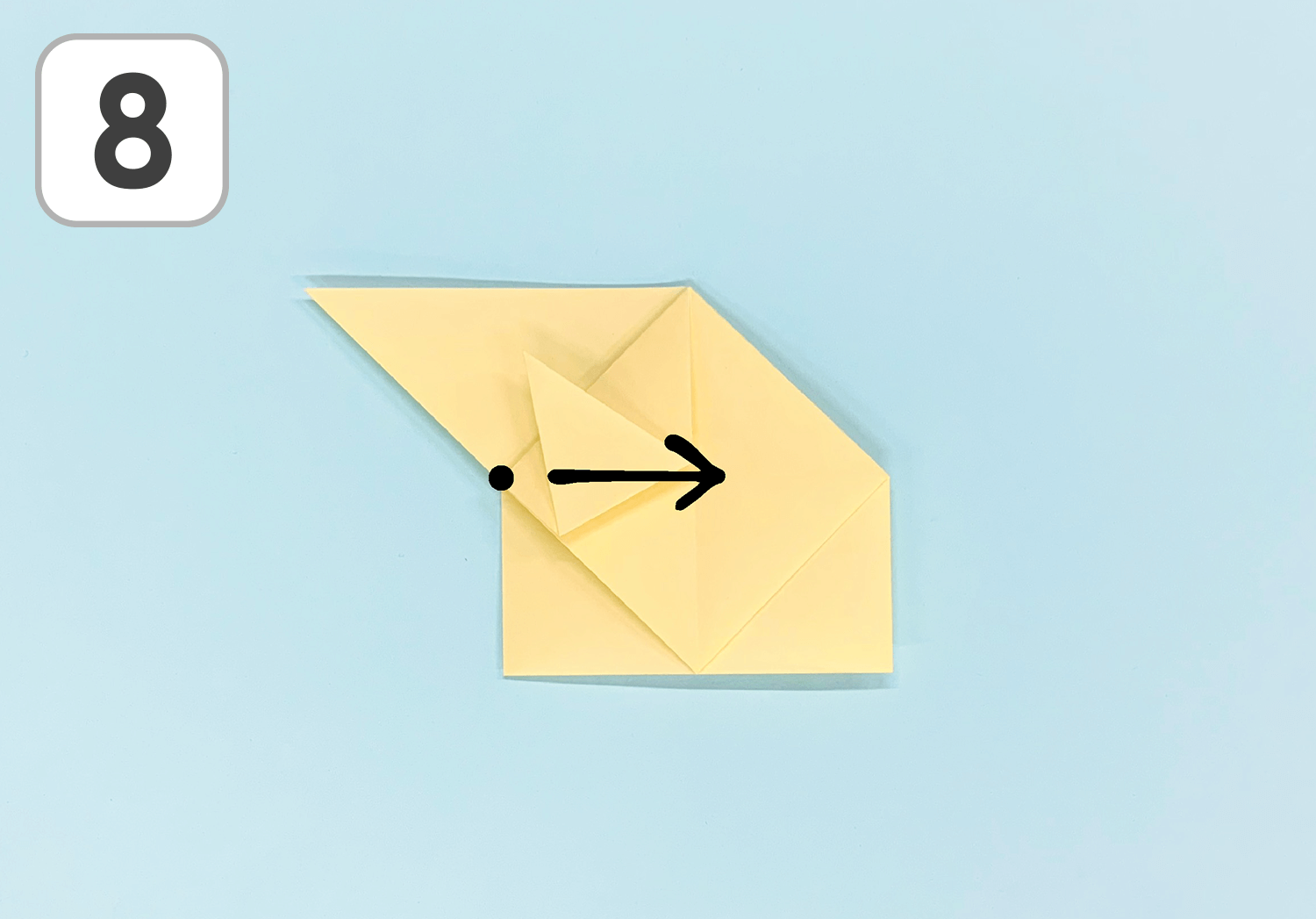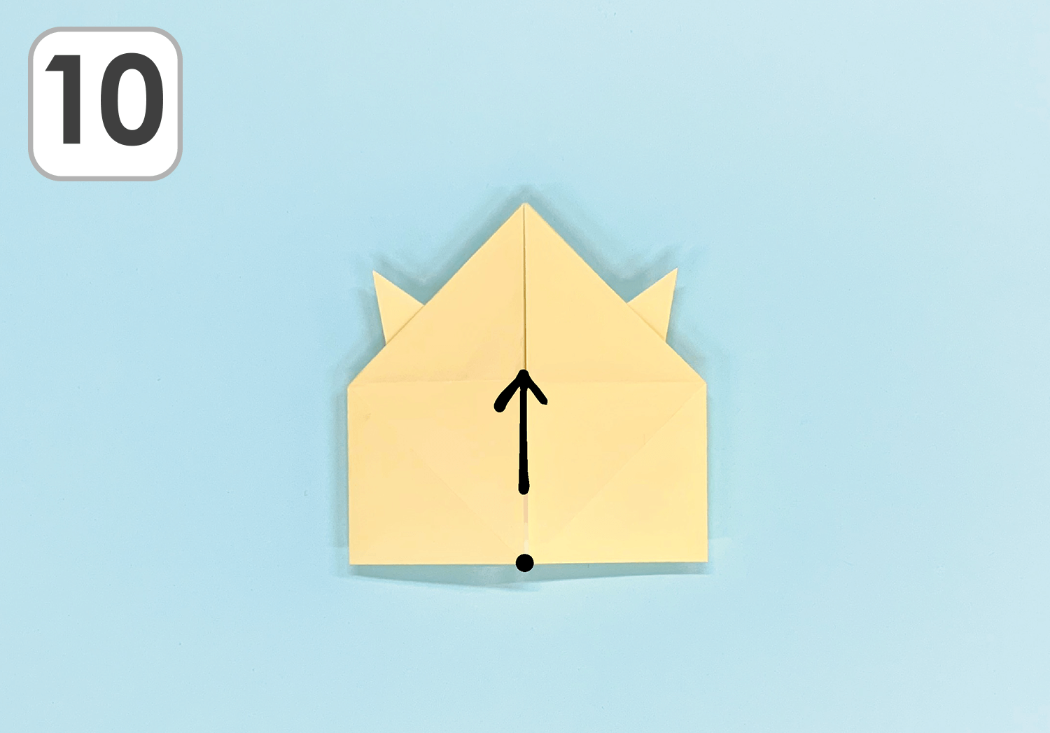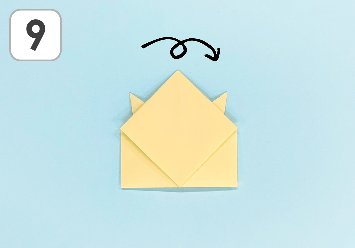 ⑦6で折り下げた角を、左上向きに折ります。この部分がねこの耳になります。