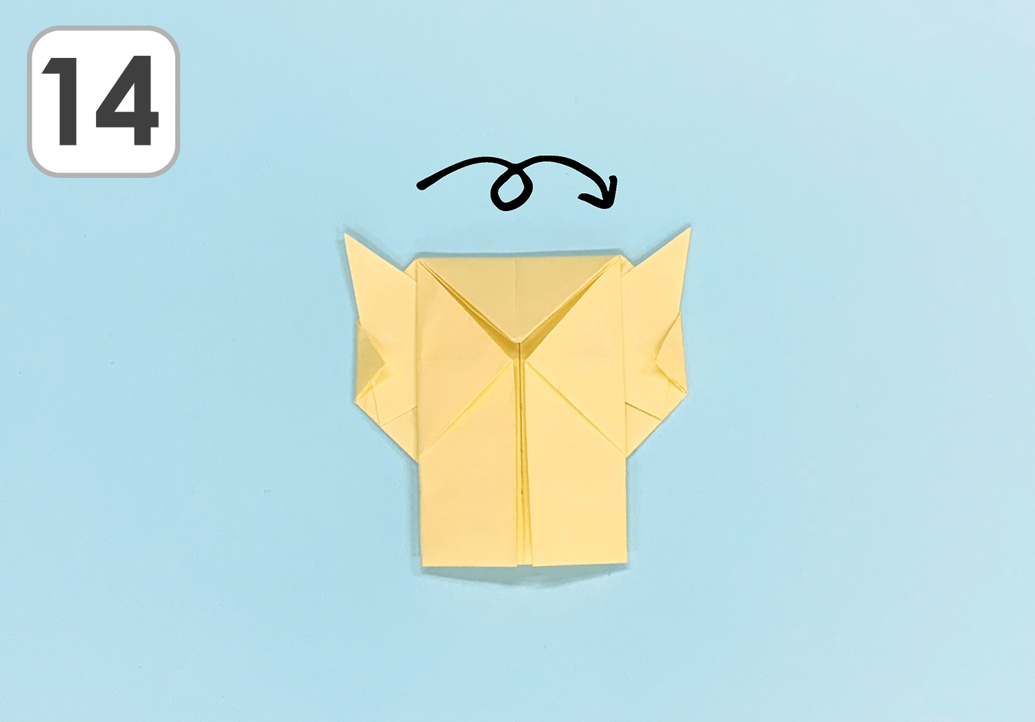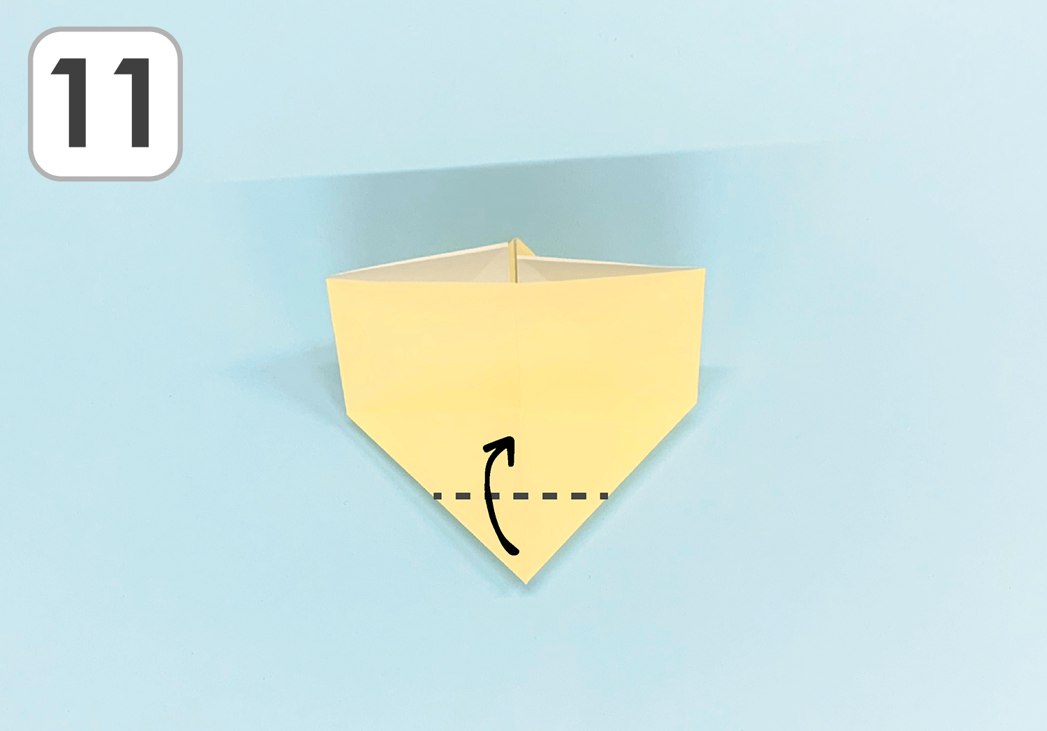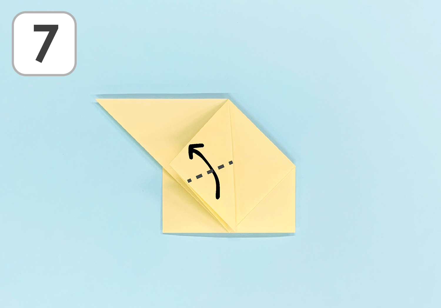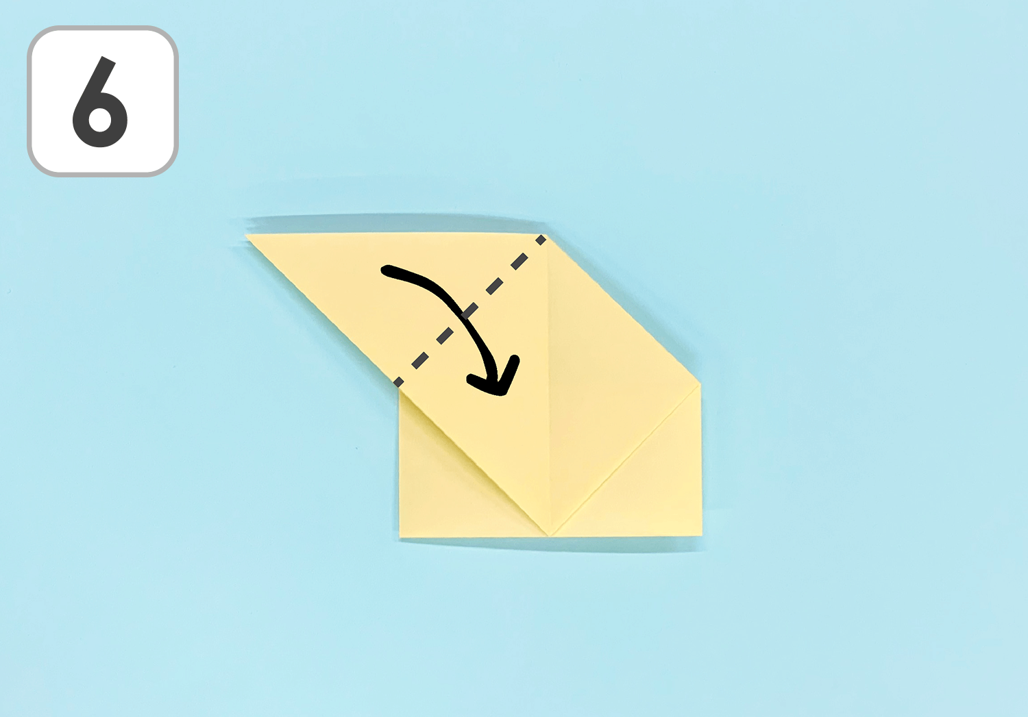 ⑦6で折り下げた角を、左上向きに折ります。この部分がねこの耳になります。