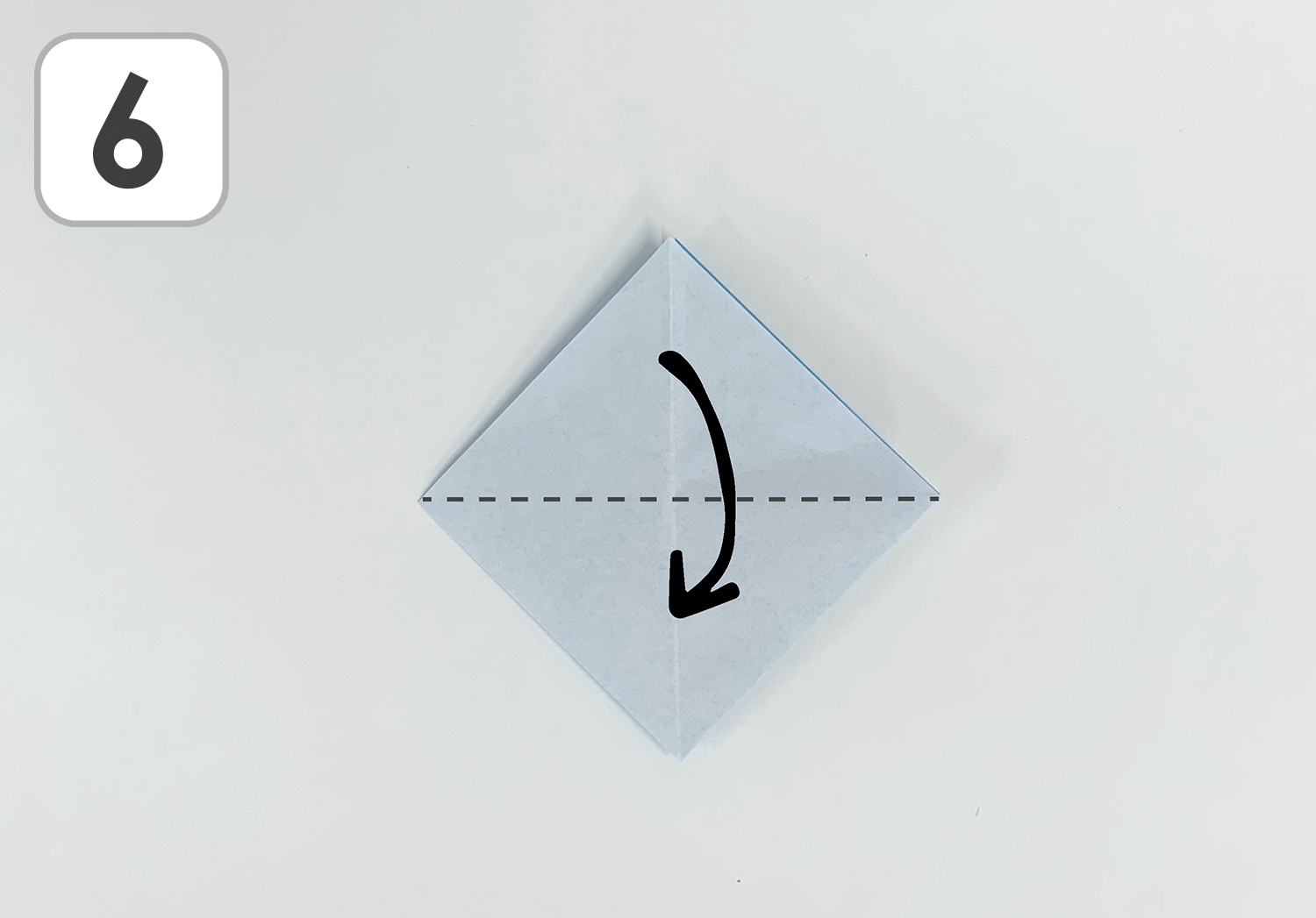 ⑥上から1枚めくり、点線の位置で折ります。裏側も同じように折ります。