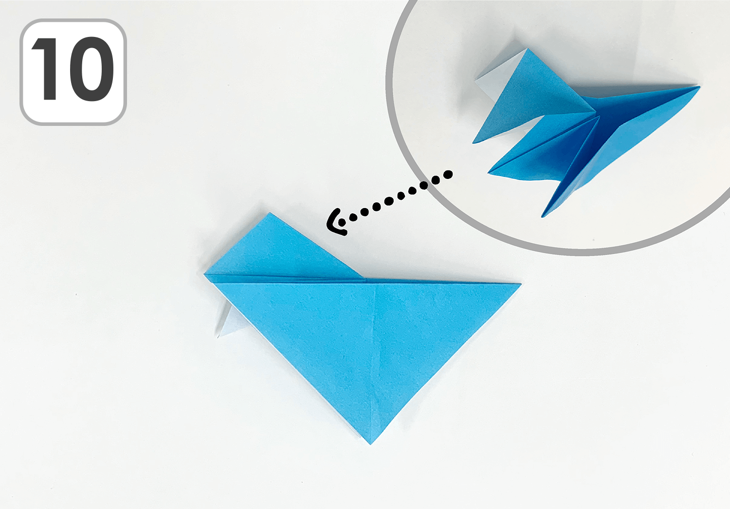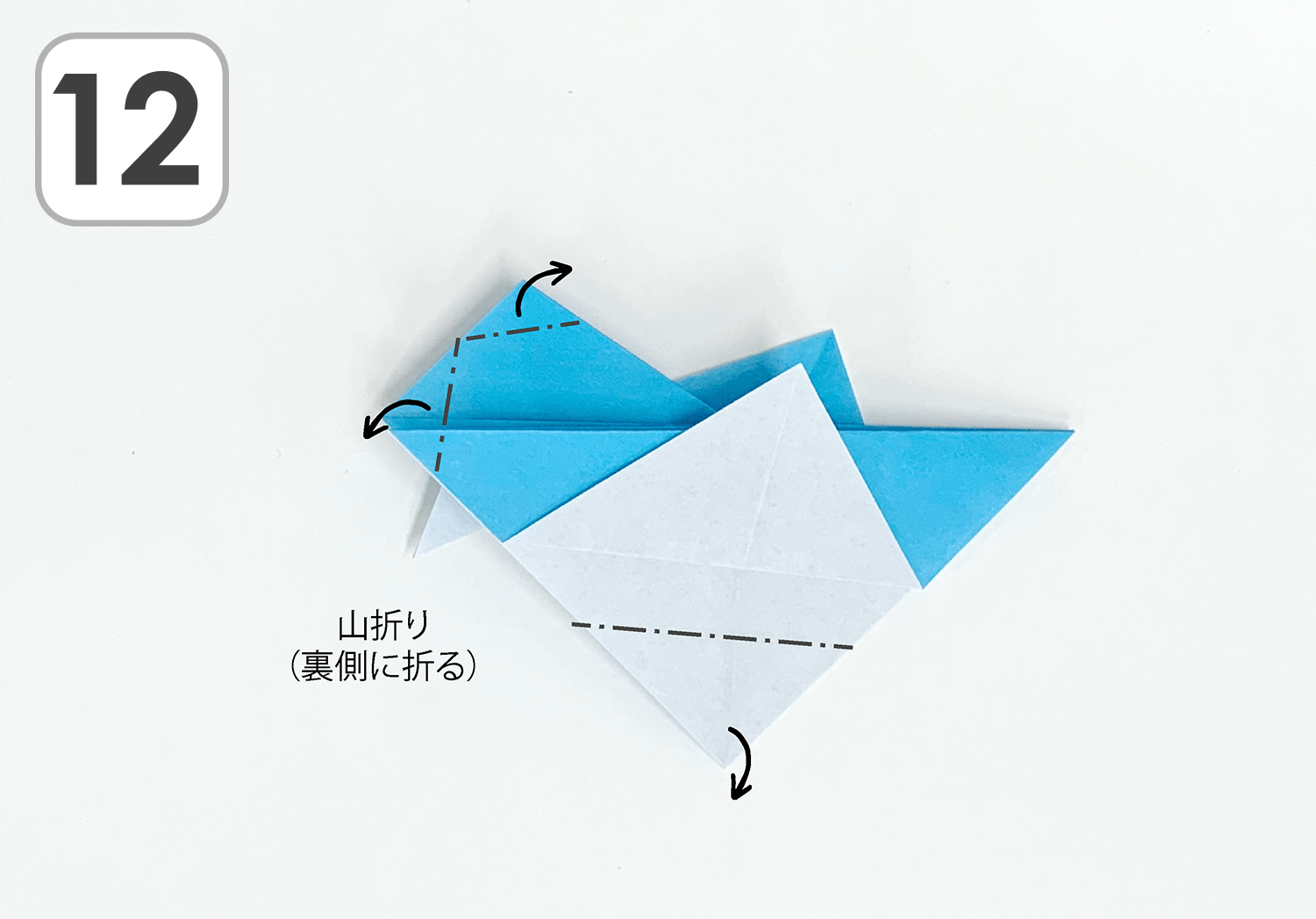 ★Point! 裏側の羽が見えるように少しずらして折りましょう。