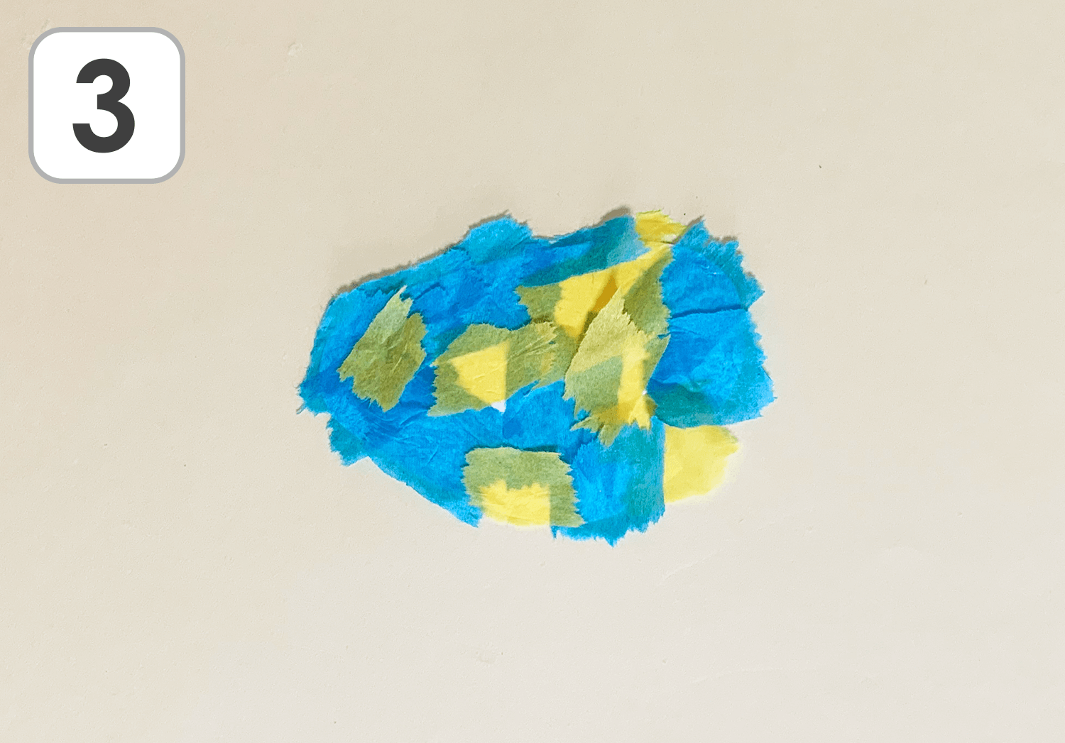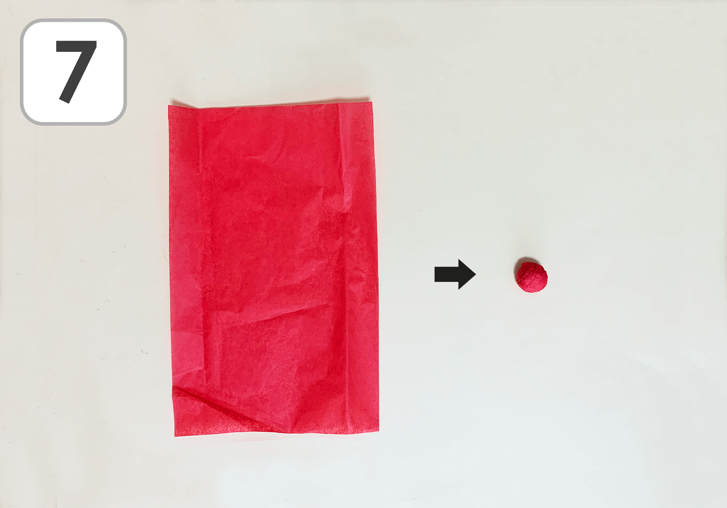 ⑦半分に切ったお花紙を小さく丸めます。