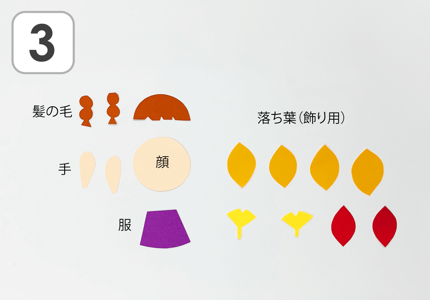 ③色画用紙で、子どもと落ち葉のパーツを切り出します。
