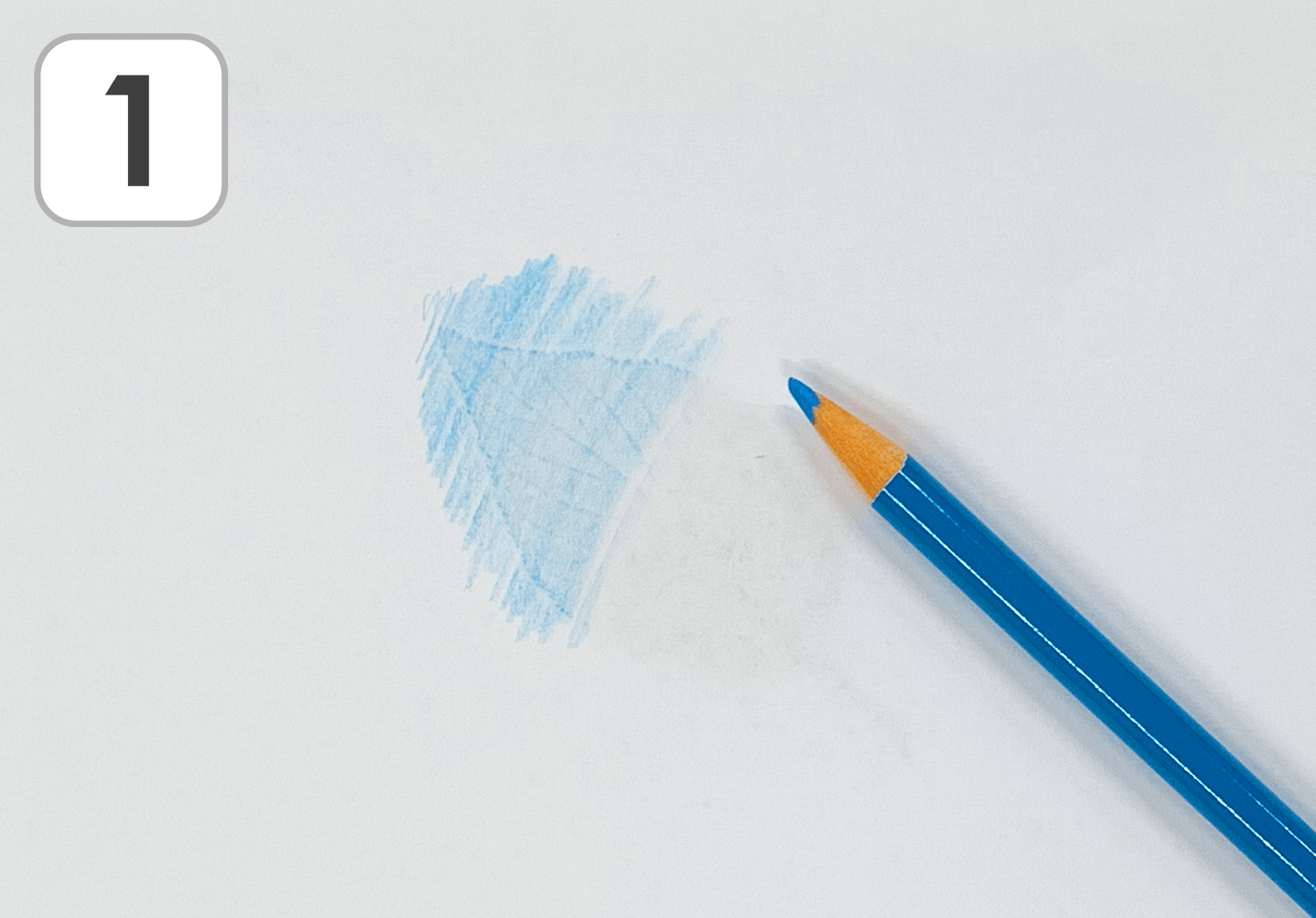 Point!① 色鉛筆は少し寝かせて持ち、初めは優しく擦ってみよう。